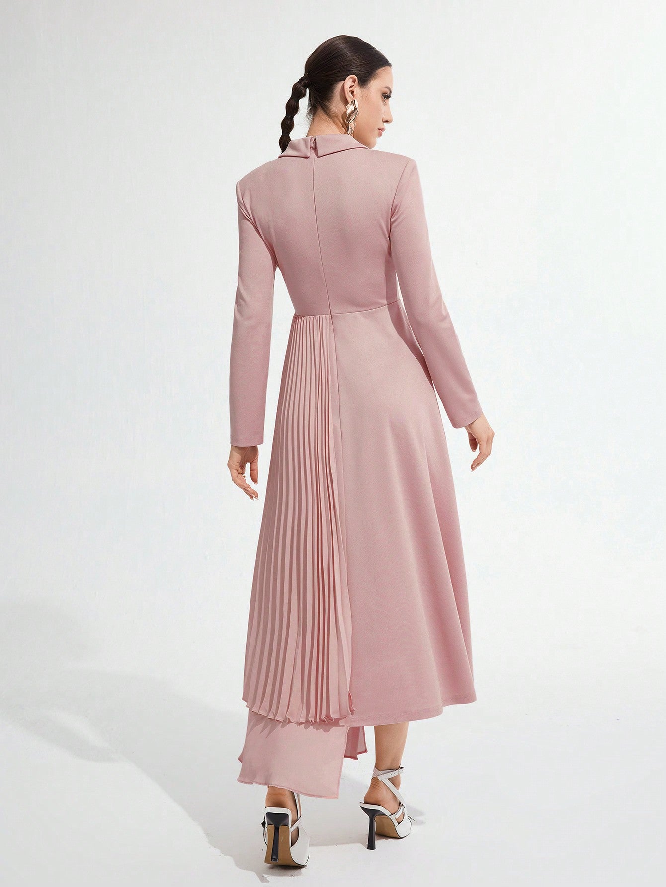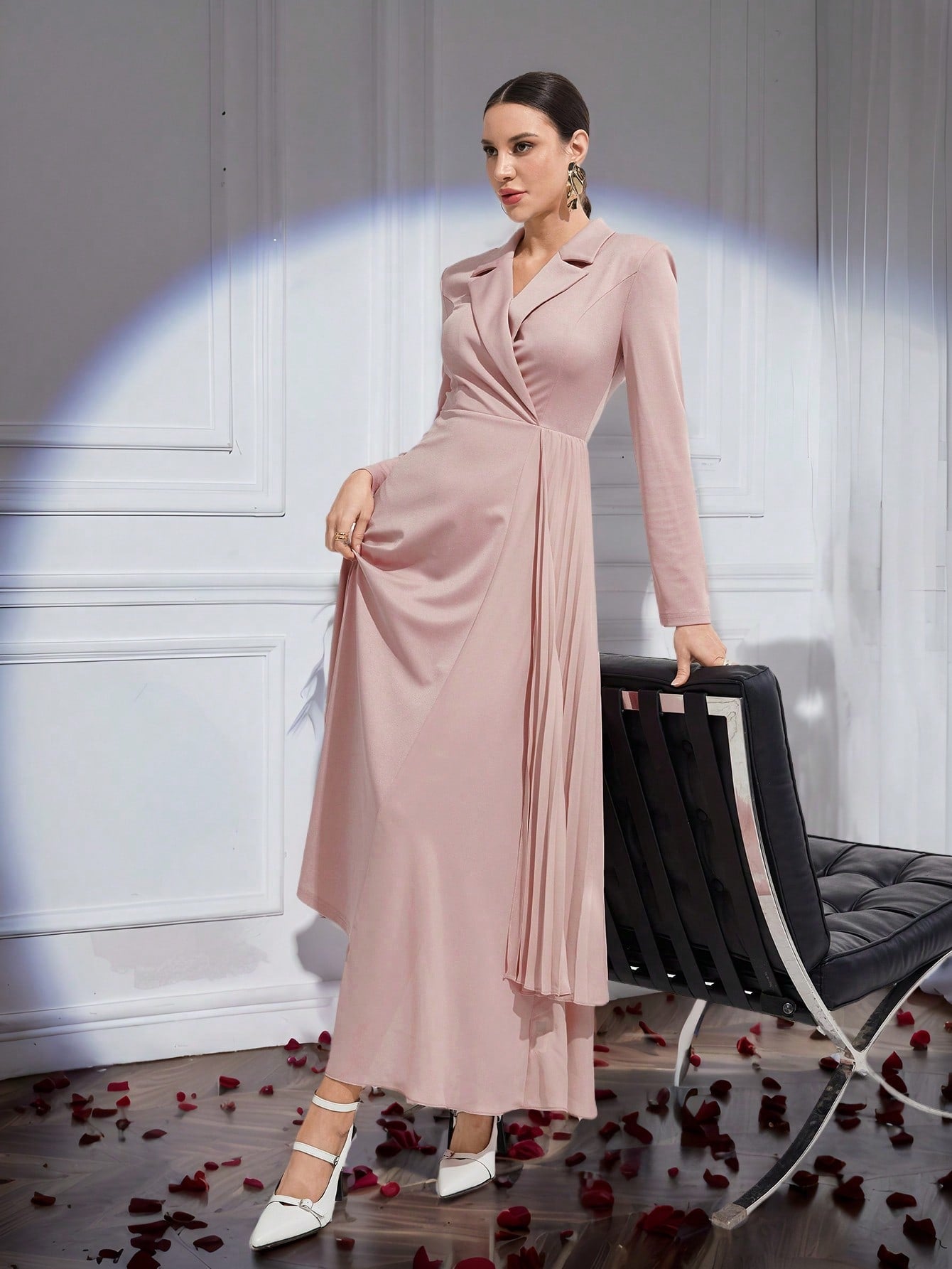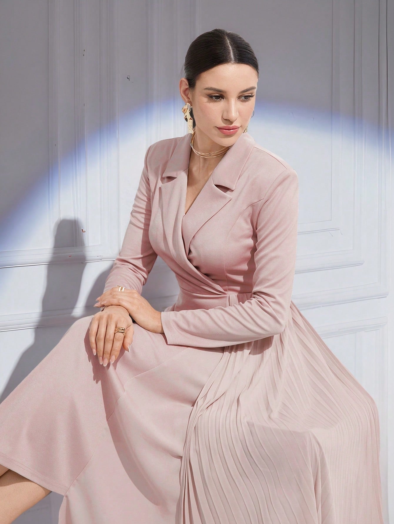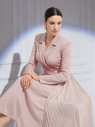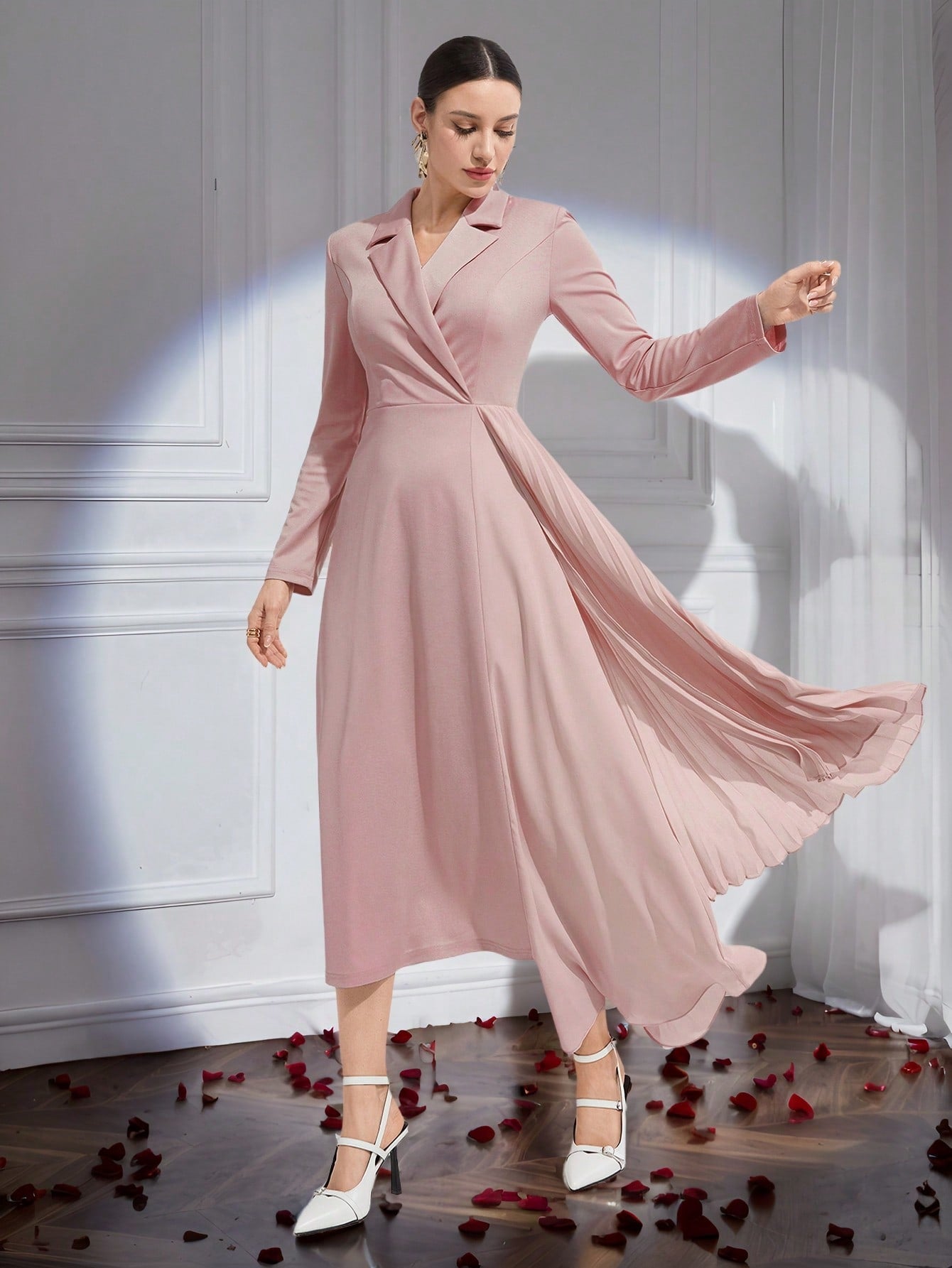 Modelyn Women's Solid Color Lapel Neck Long Sleeve Simple Casual Elegant Dress