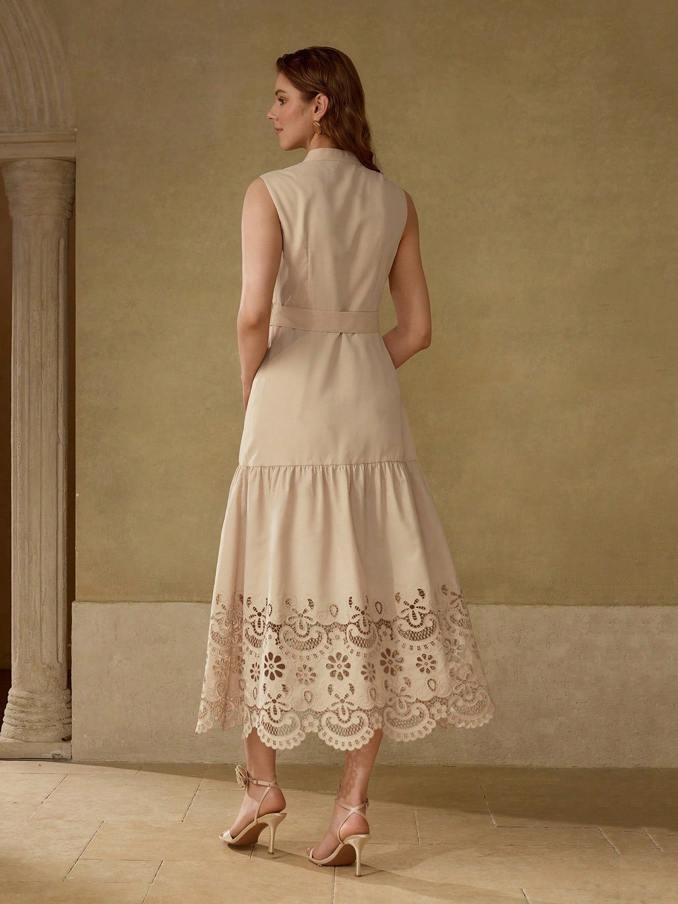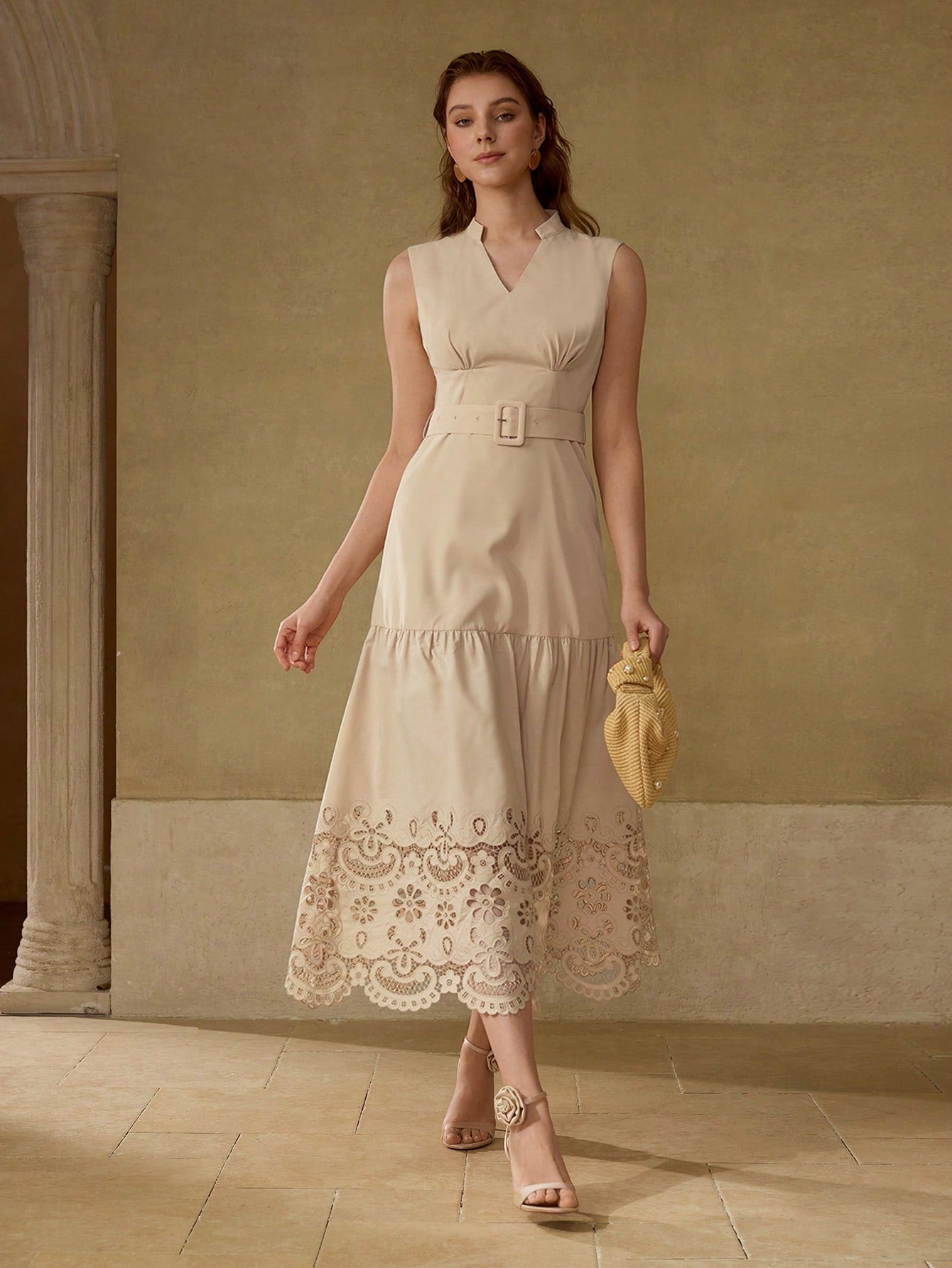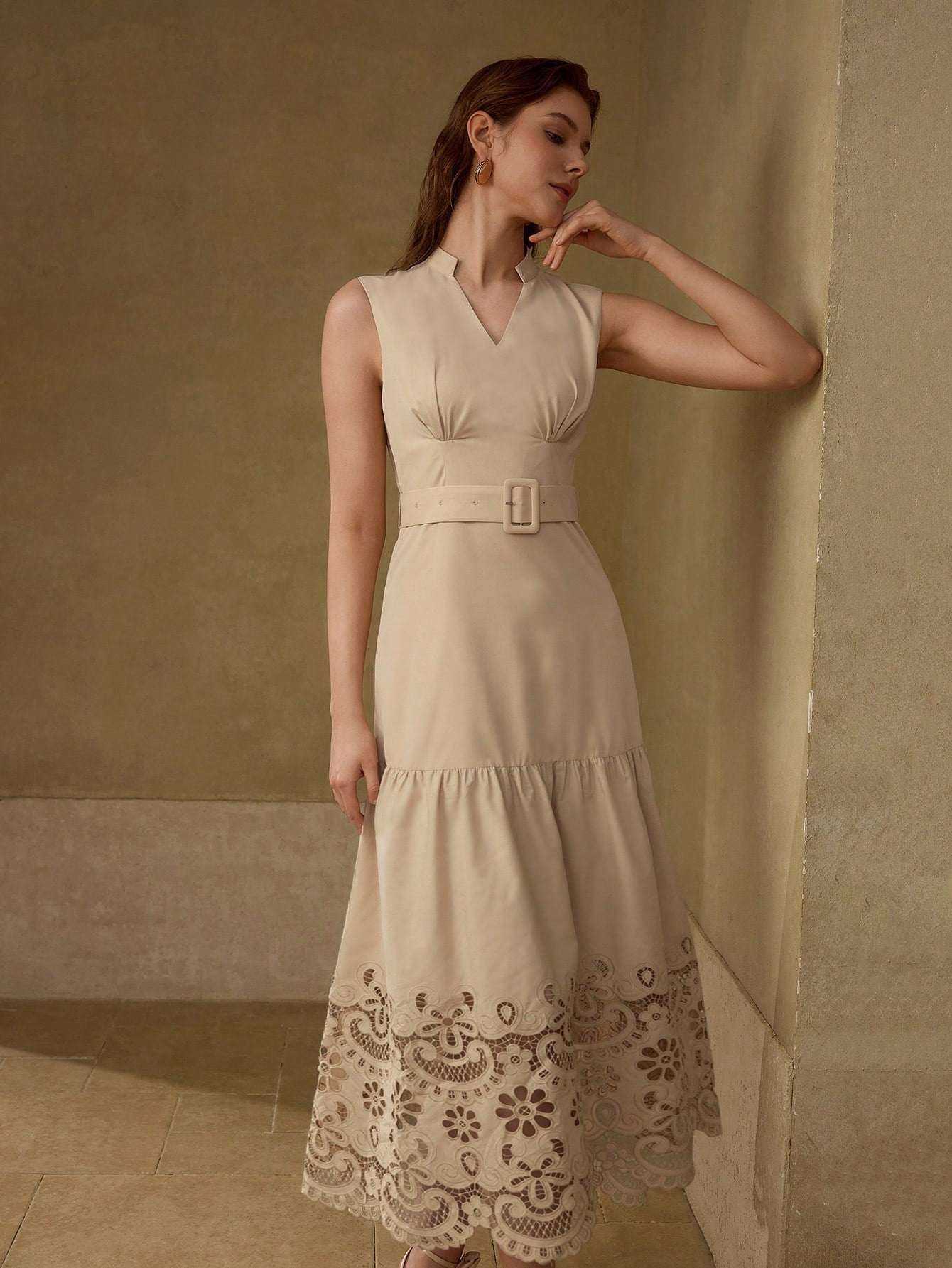 women MOTF PREMIUM CONTRAST LACE BELTED DRESS