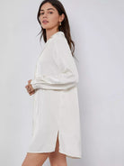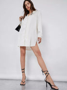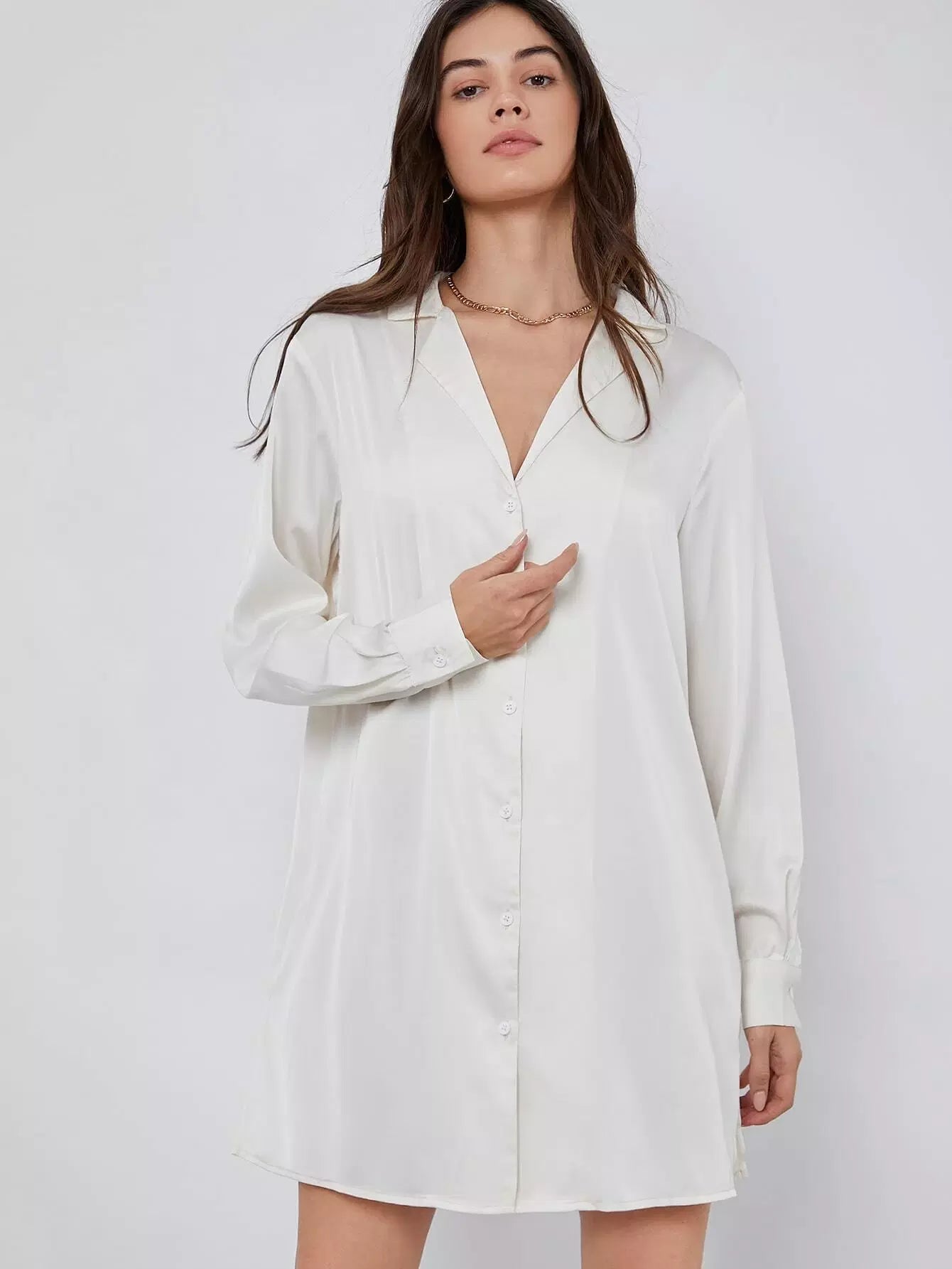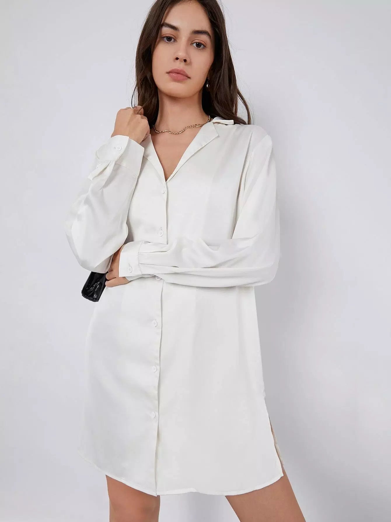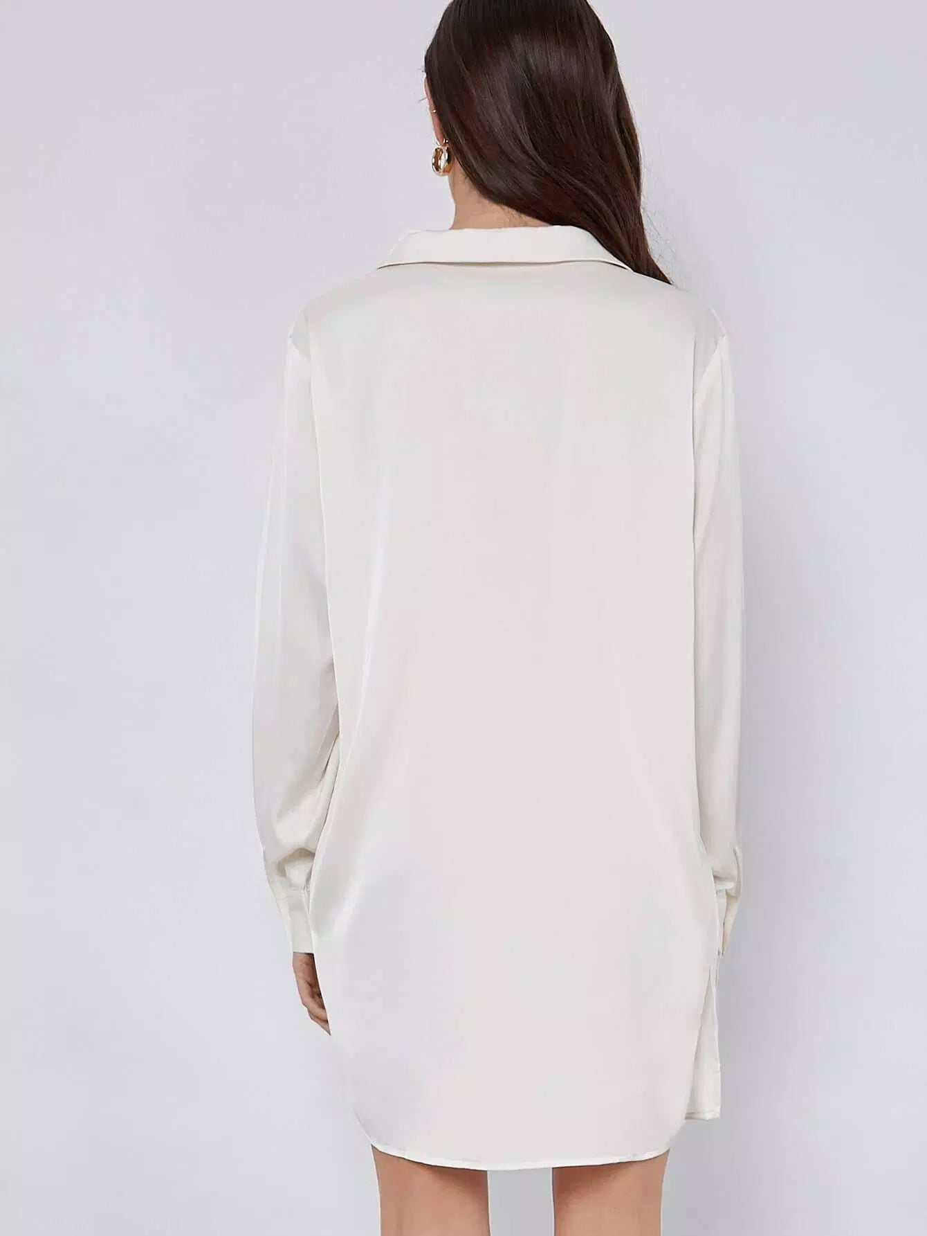 Notched Collar Single Breasted Solid Satin Long Blouse