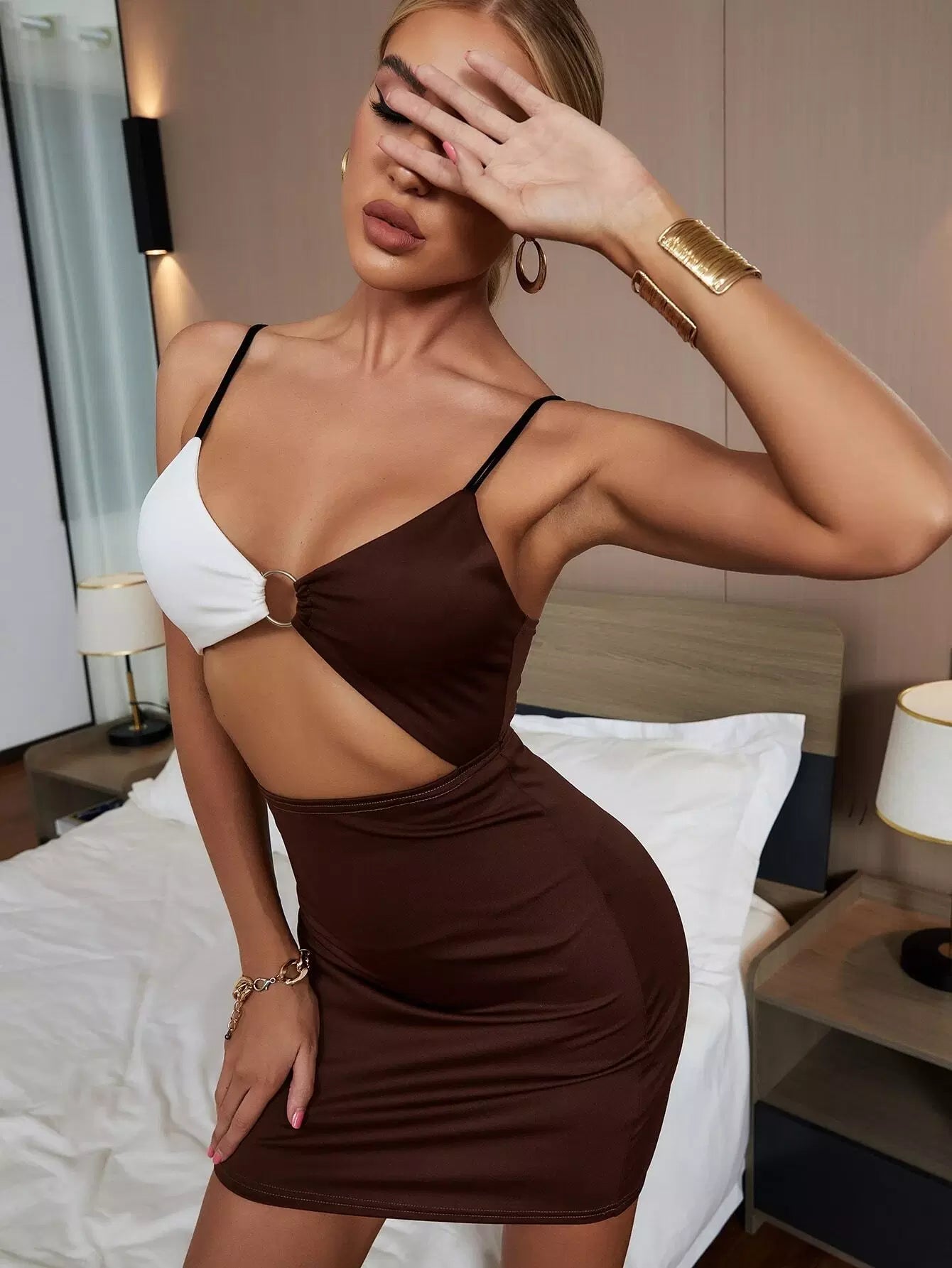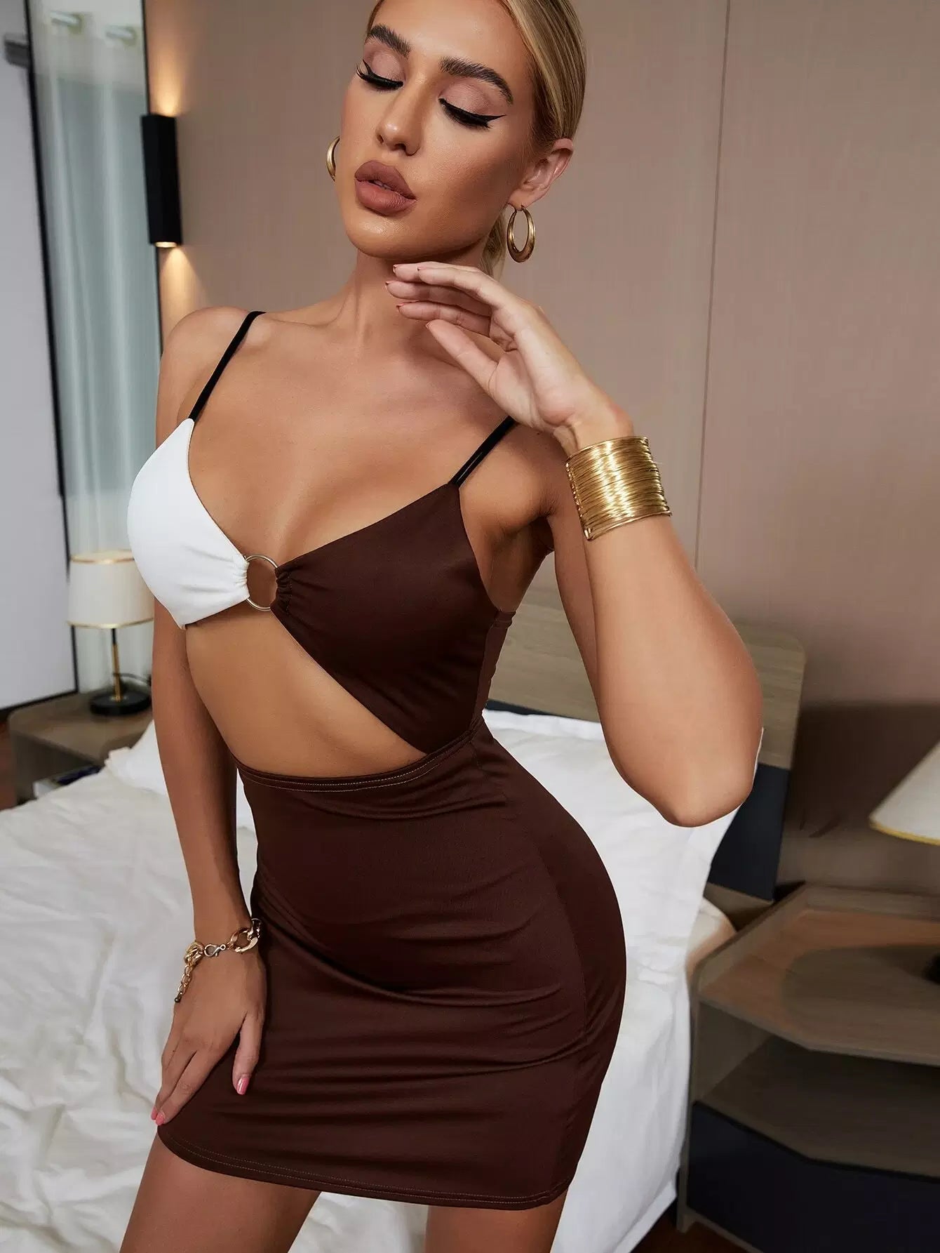 O-ring Cut Out Color-block Cami Dress