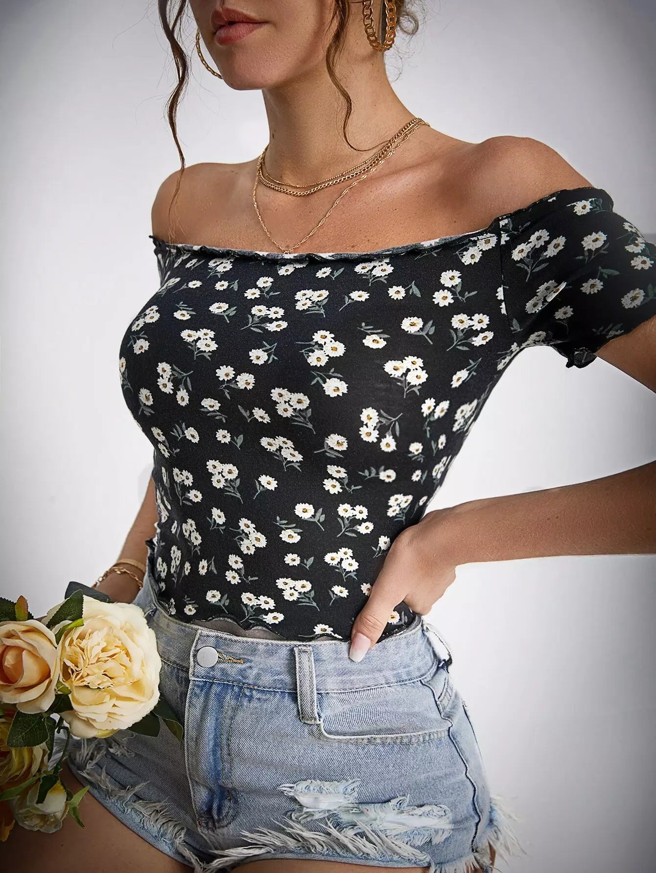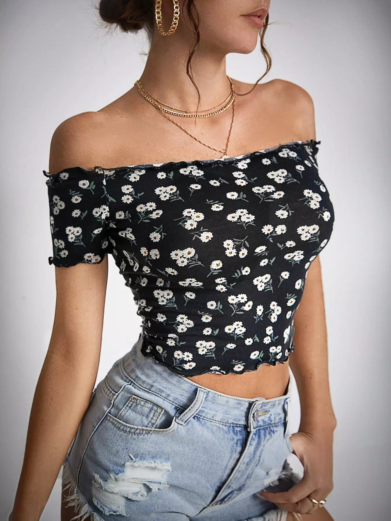 Off Shoulder Daisy Floral Top