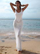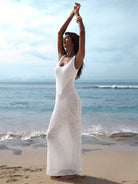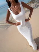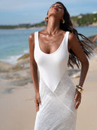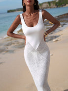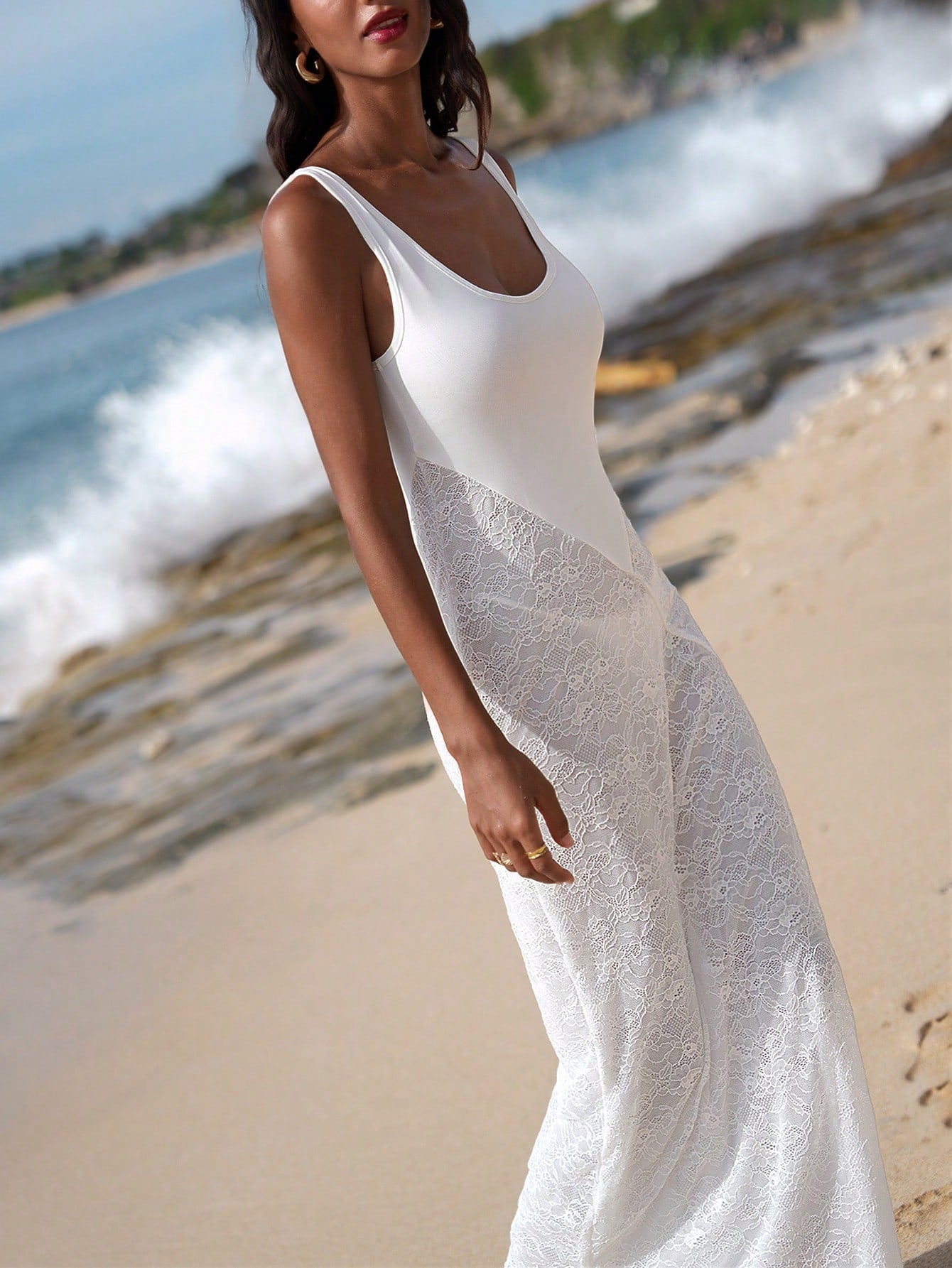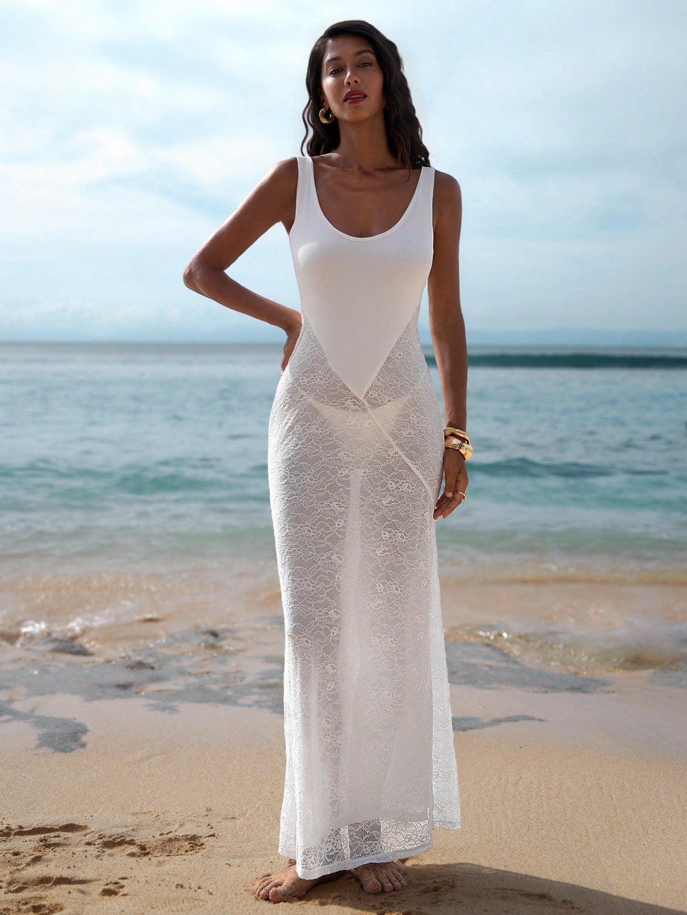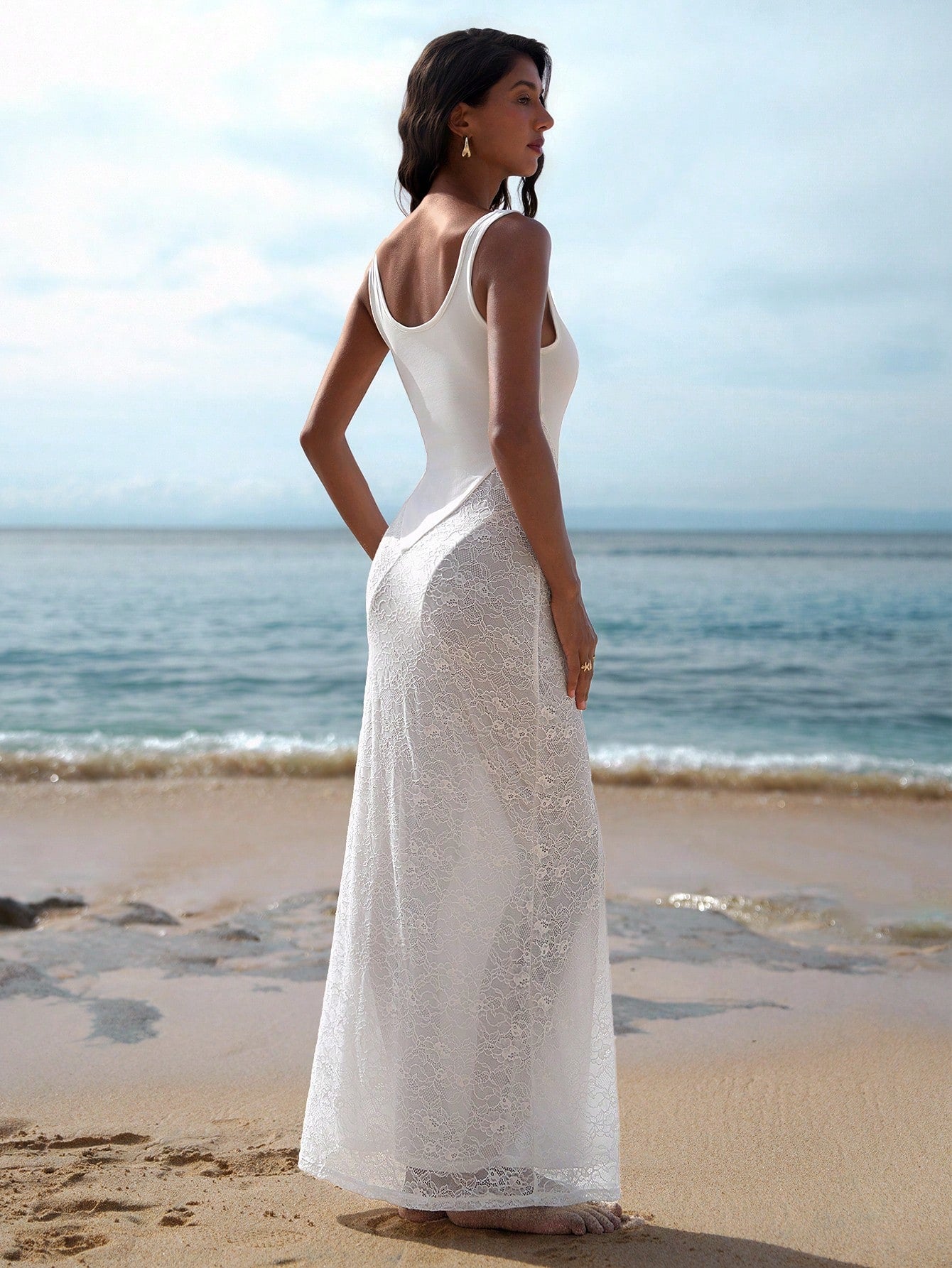 Opulessa Solid Color Knit Mesh Contrast Lace Fabric Fitted Women's Dress