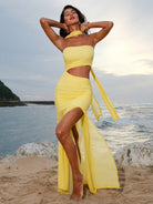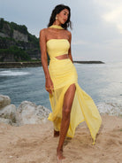 Opulessa Summer Beach Sexy Elegant Wedding Guest Graduation Solid Color Knitted Cutout Design Fitted