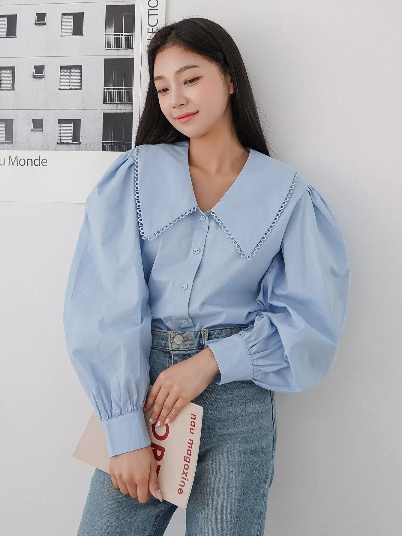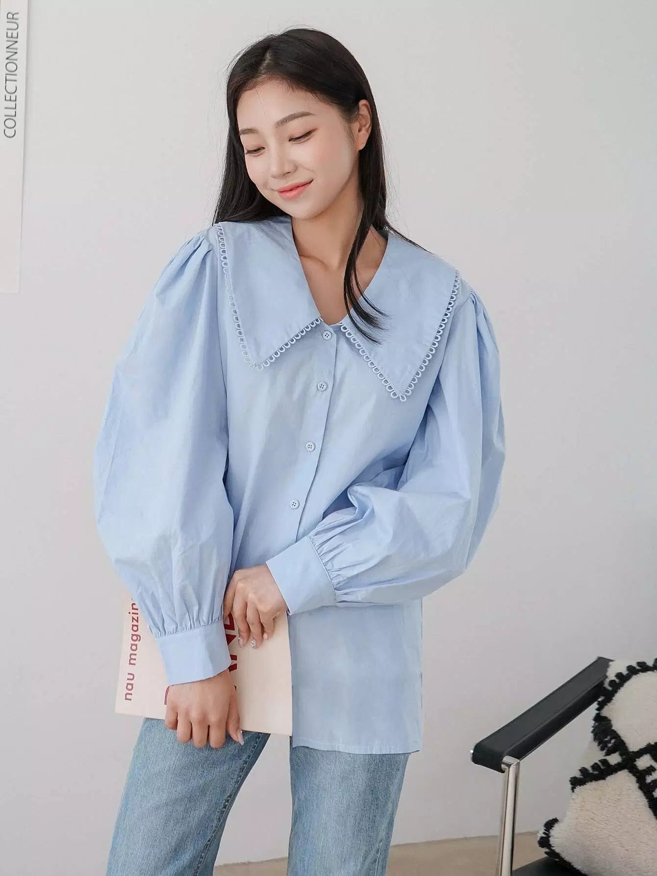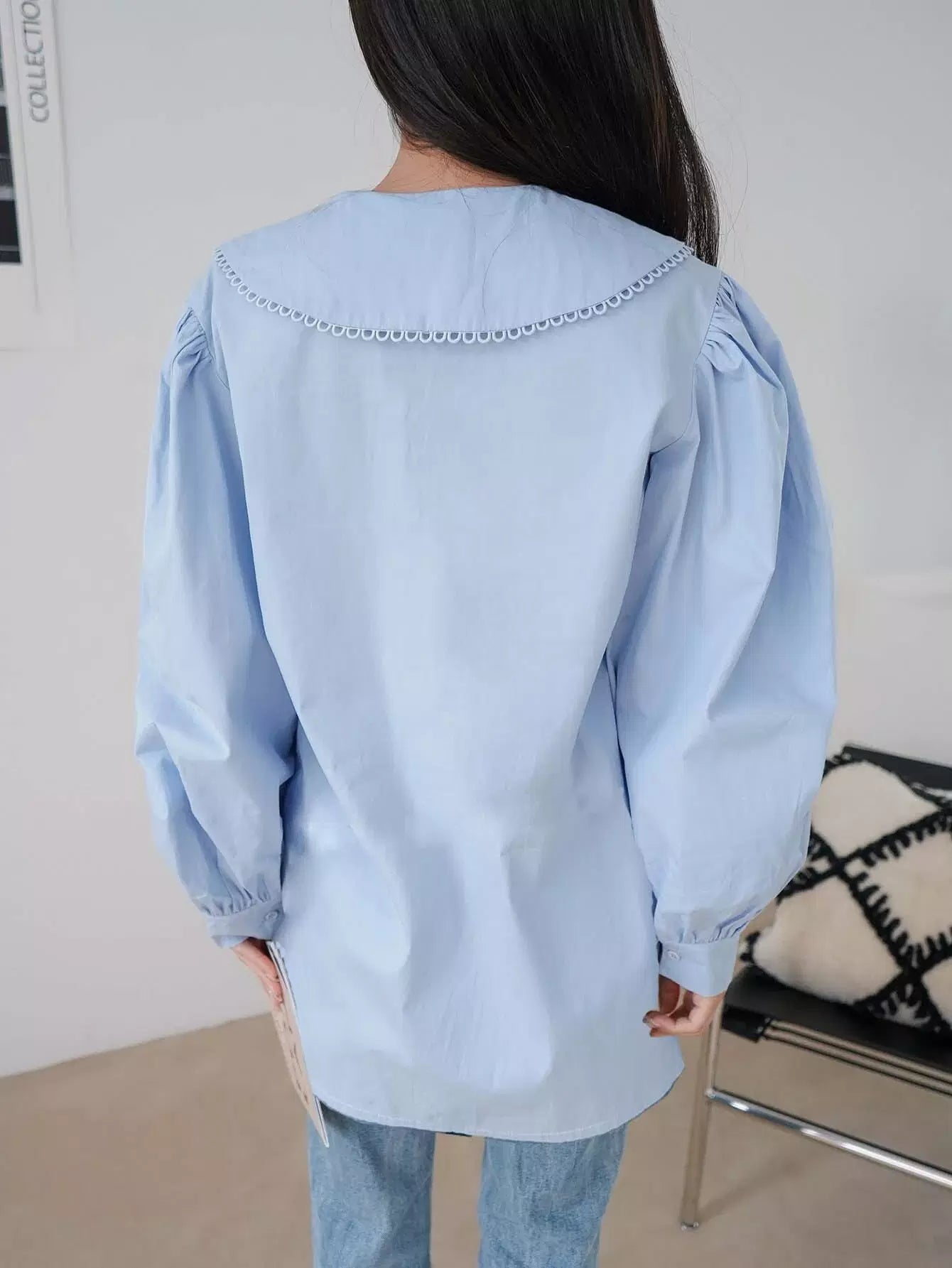Peter Pan Collar Lantern Sleeve Blouse