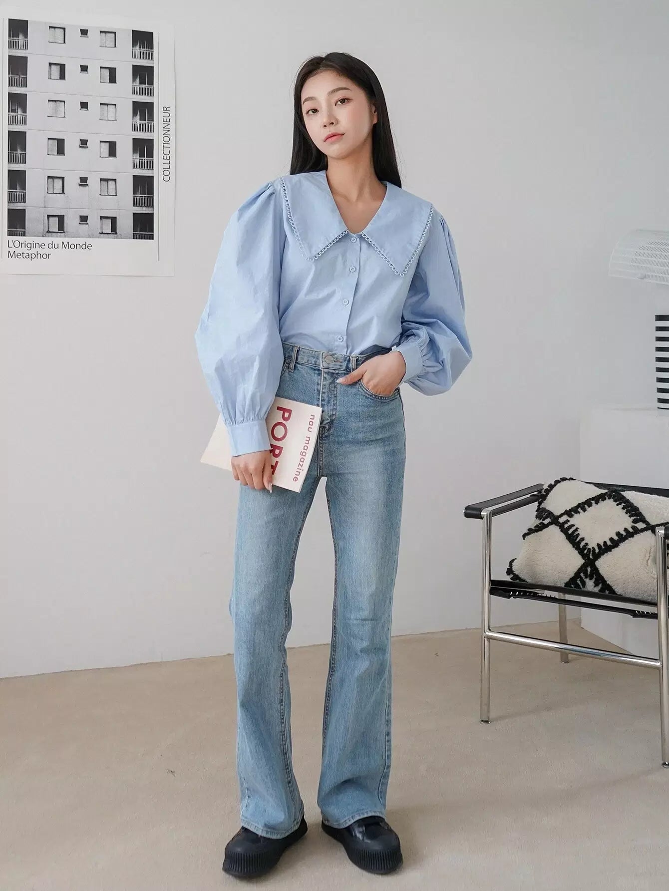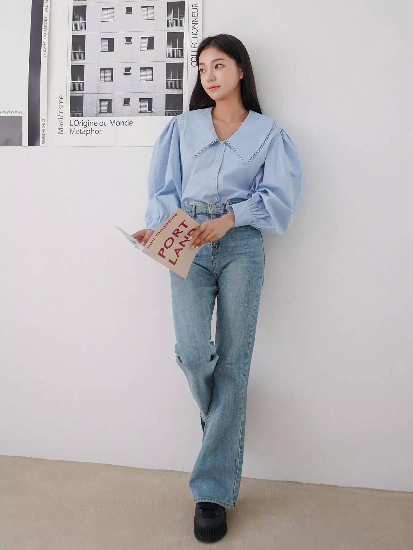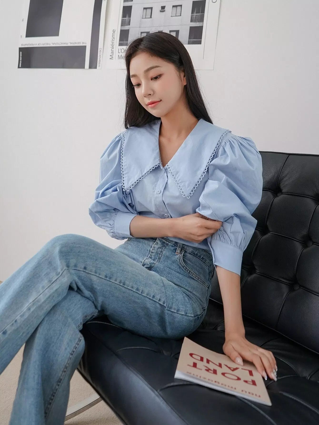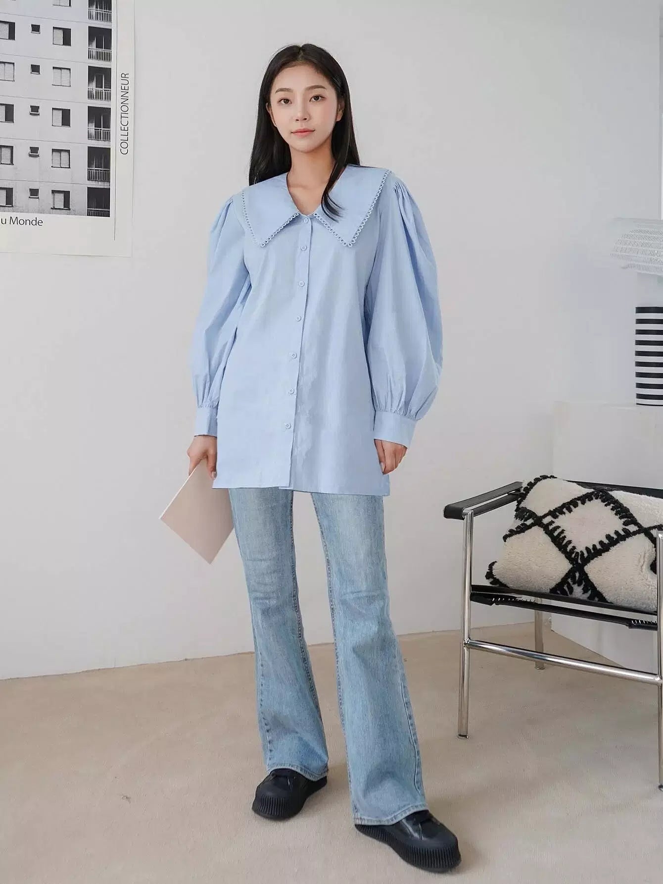 Peter Pan Collar Lantern Sleeve Blouse
