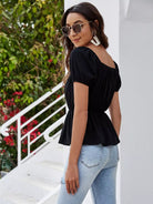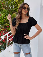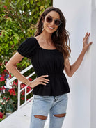 Puff Sleeve Ruched Detail Ruffle Hem Top