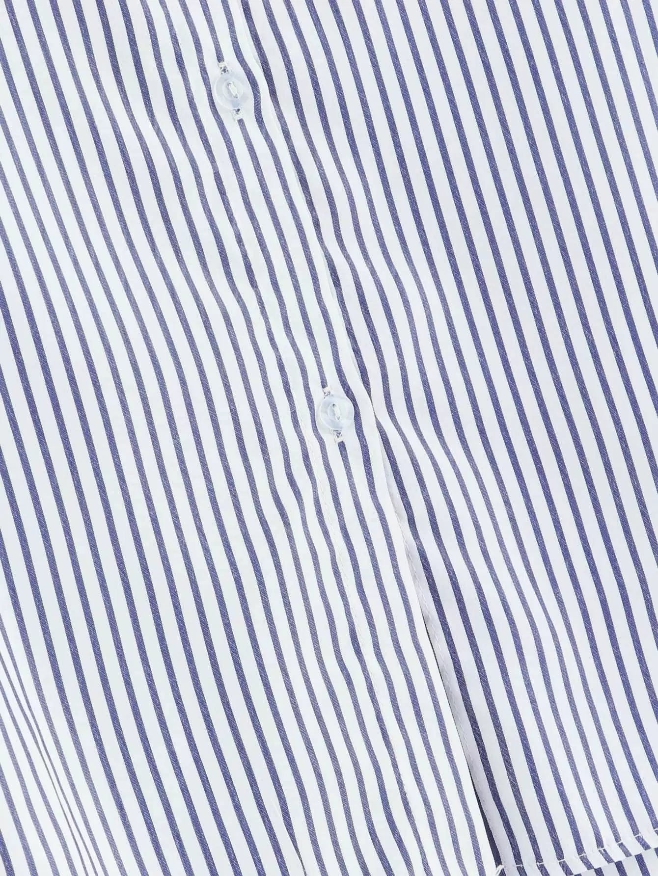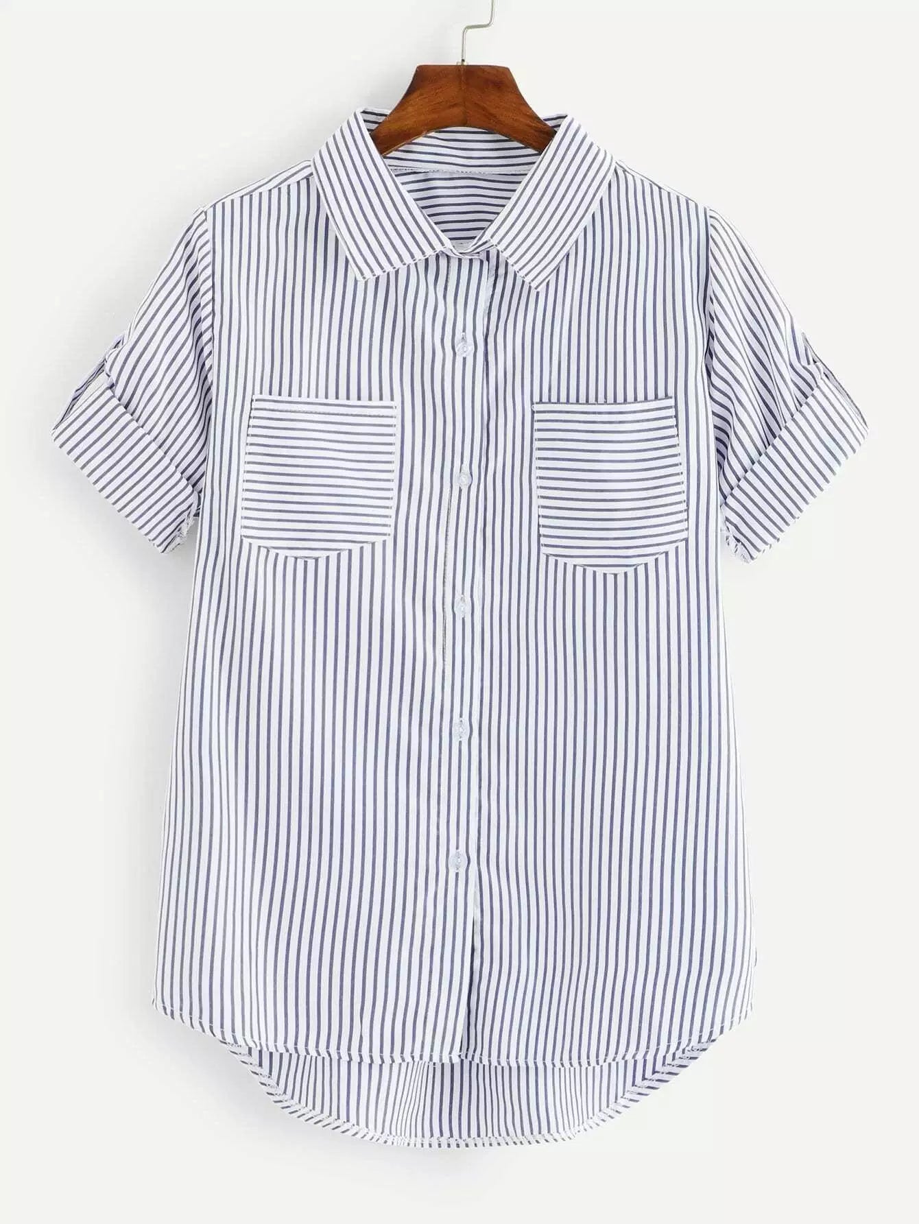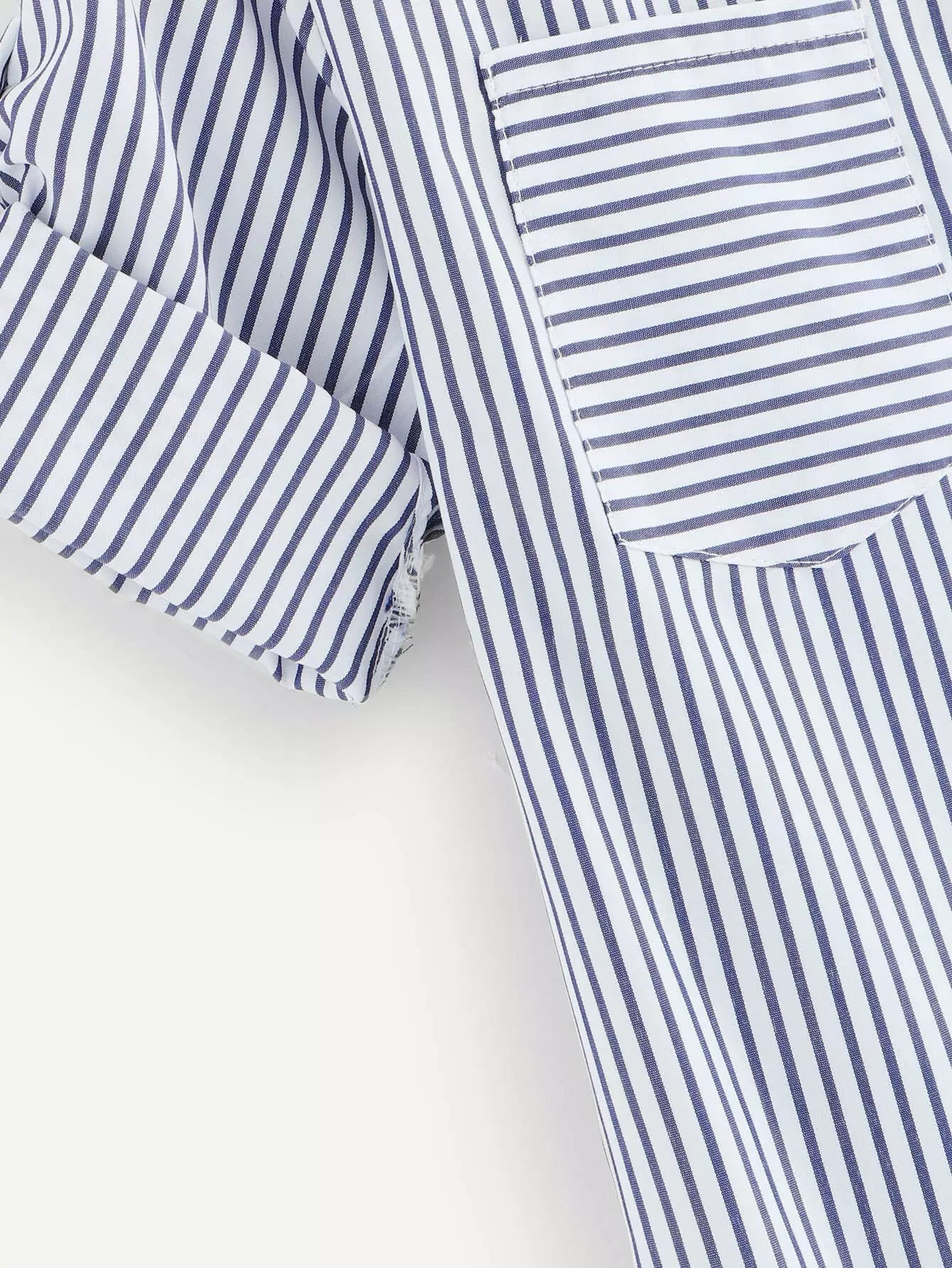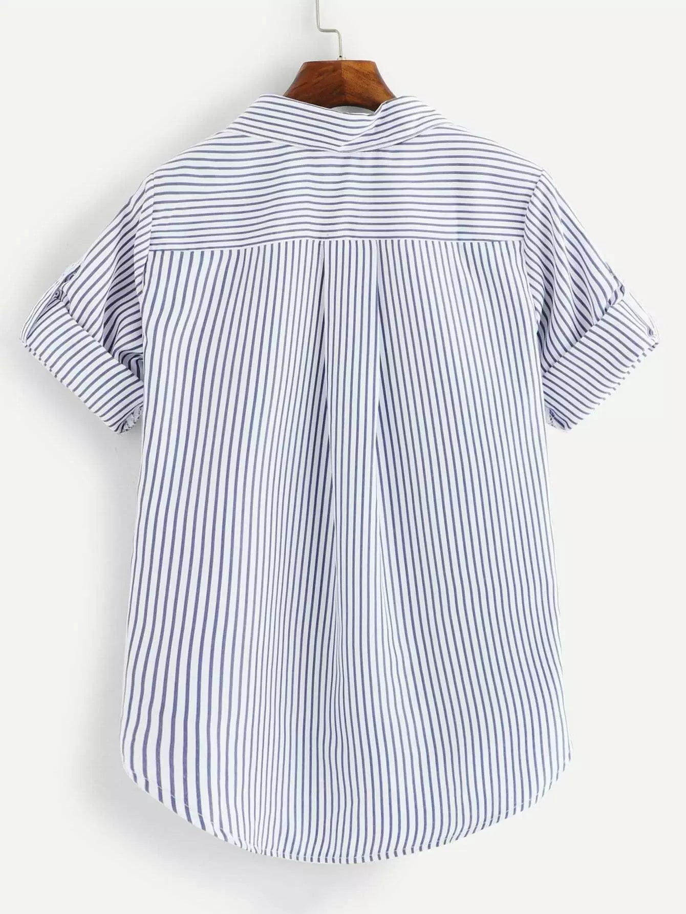 Roll Tab Sleeve Pocket Patch Striped Shirt
