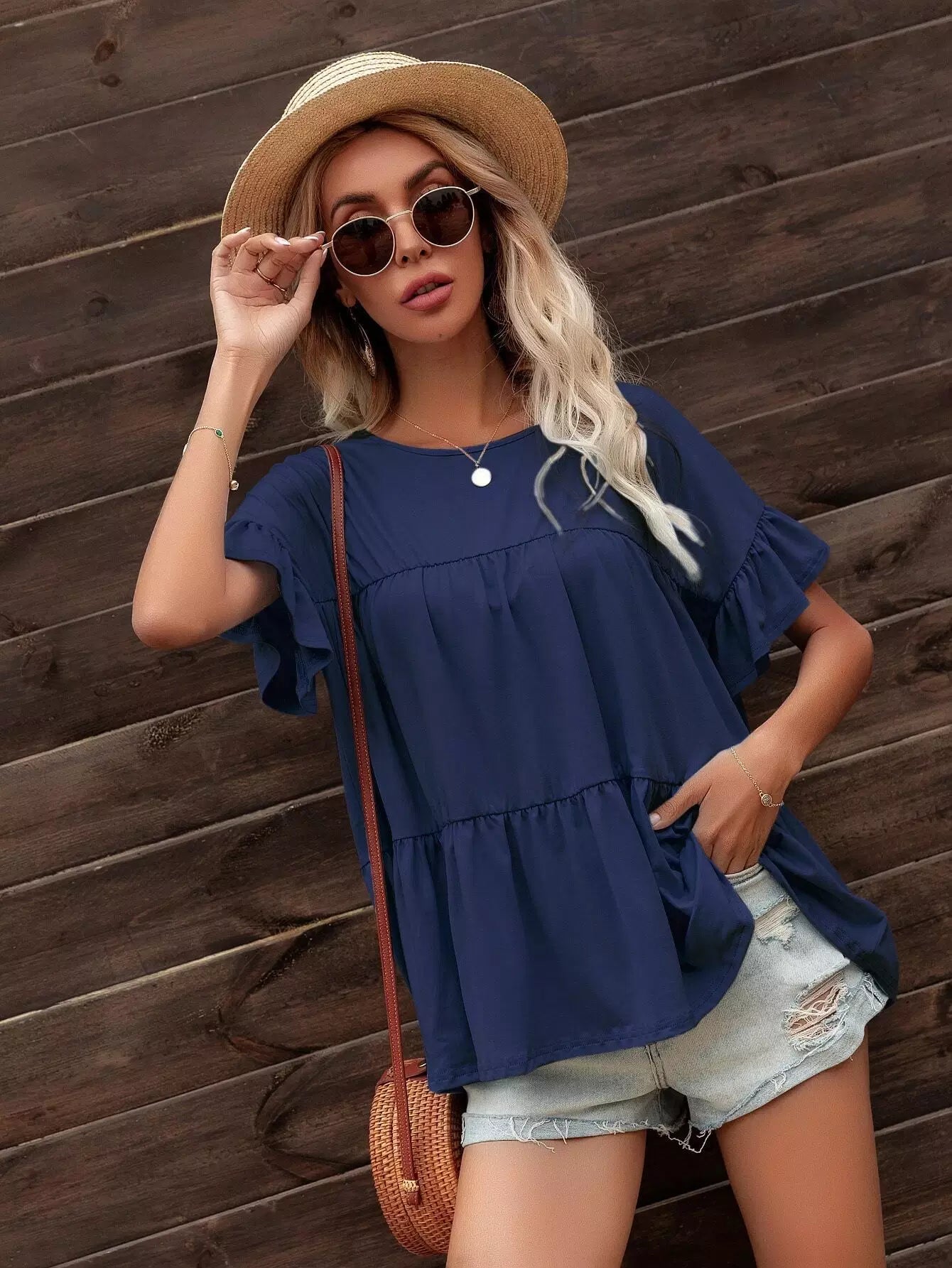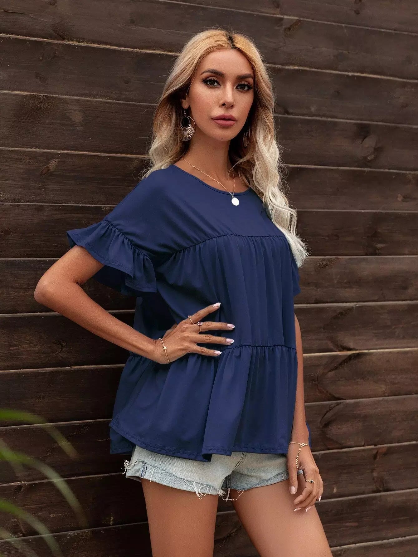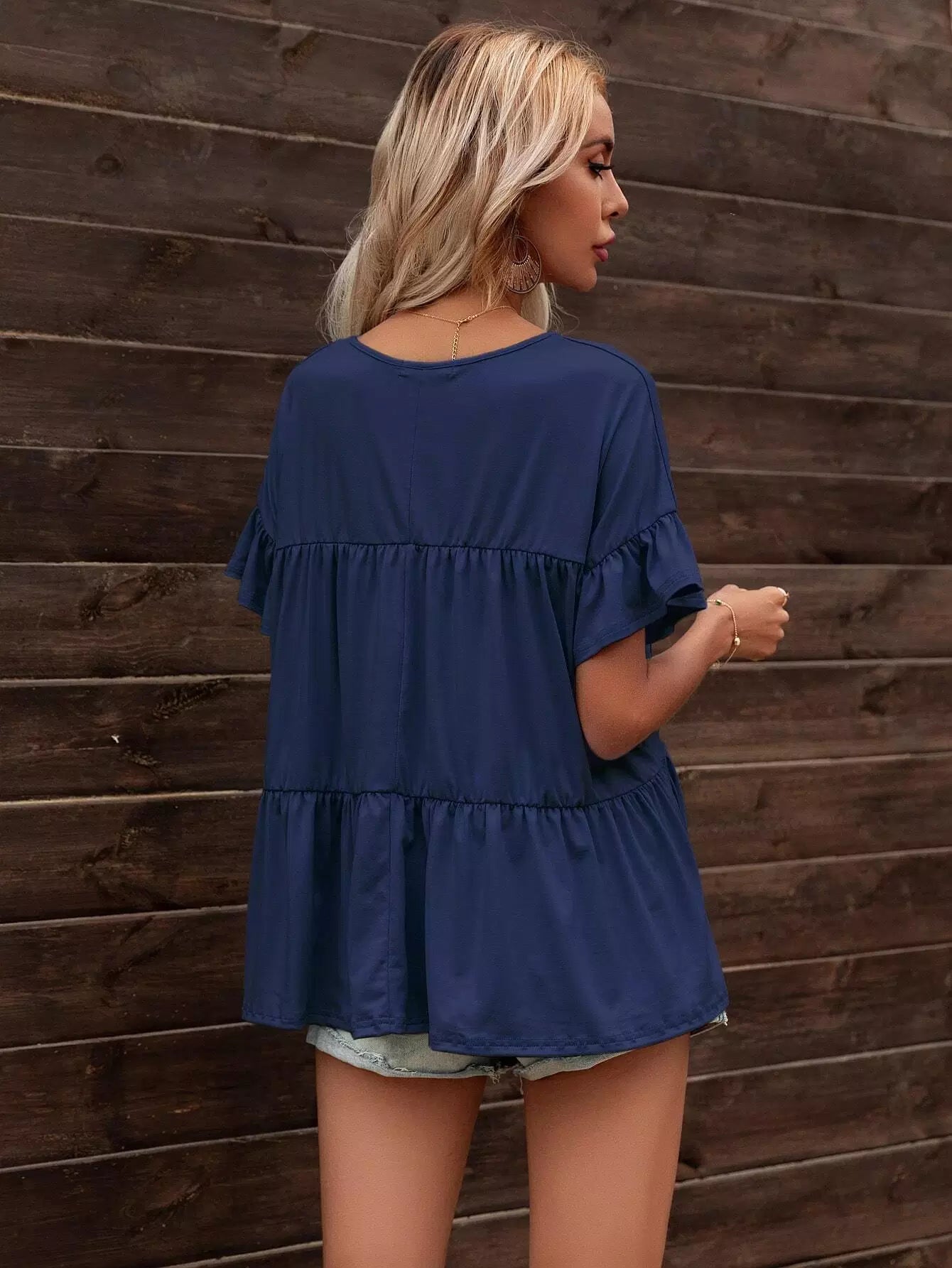 Ruffle Trim Smock Top