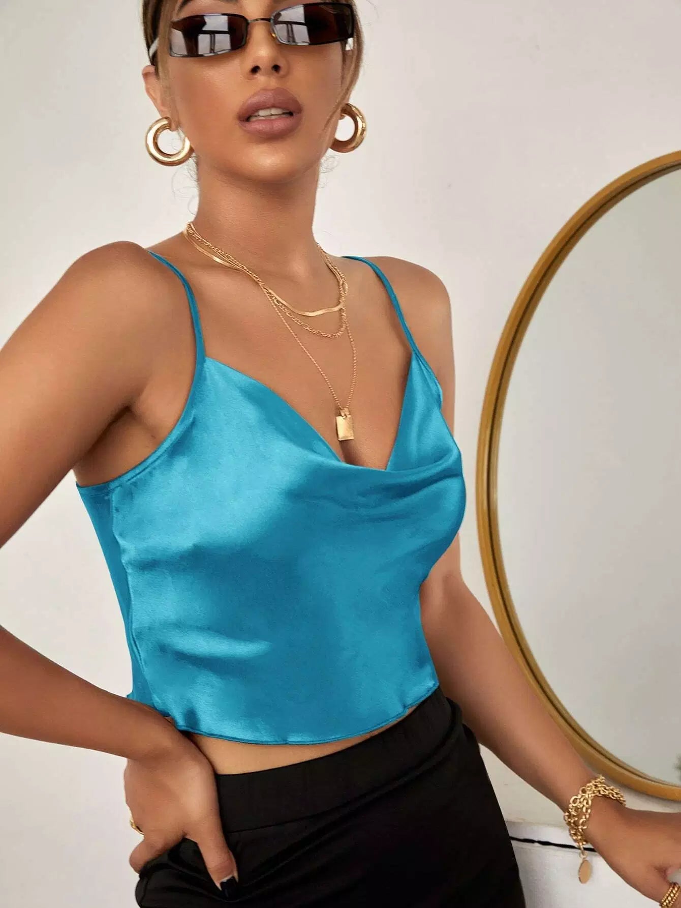 Satin Cowl Neck Cami Top