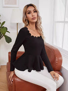 Scallop Trim Ruffle Hem Top