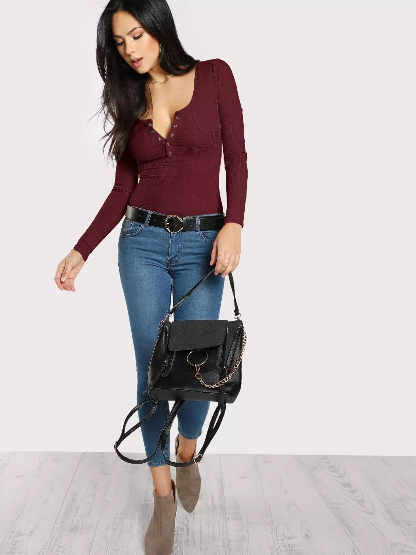 Scoop Neck Ribbed Henley Tee