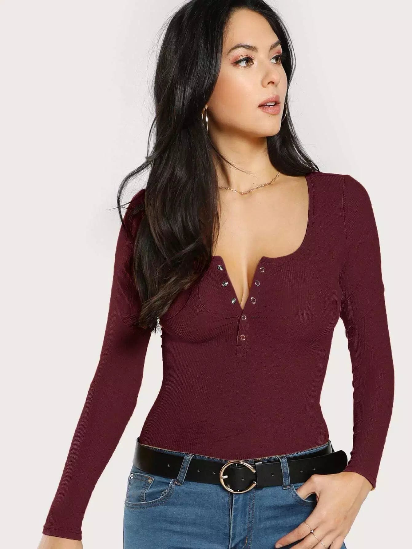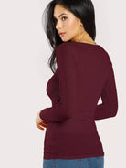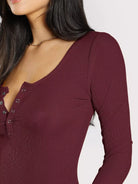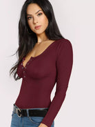 Women - Scoop Neck Ribbed Henley Tee