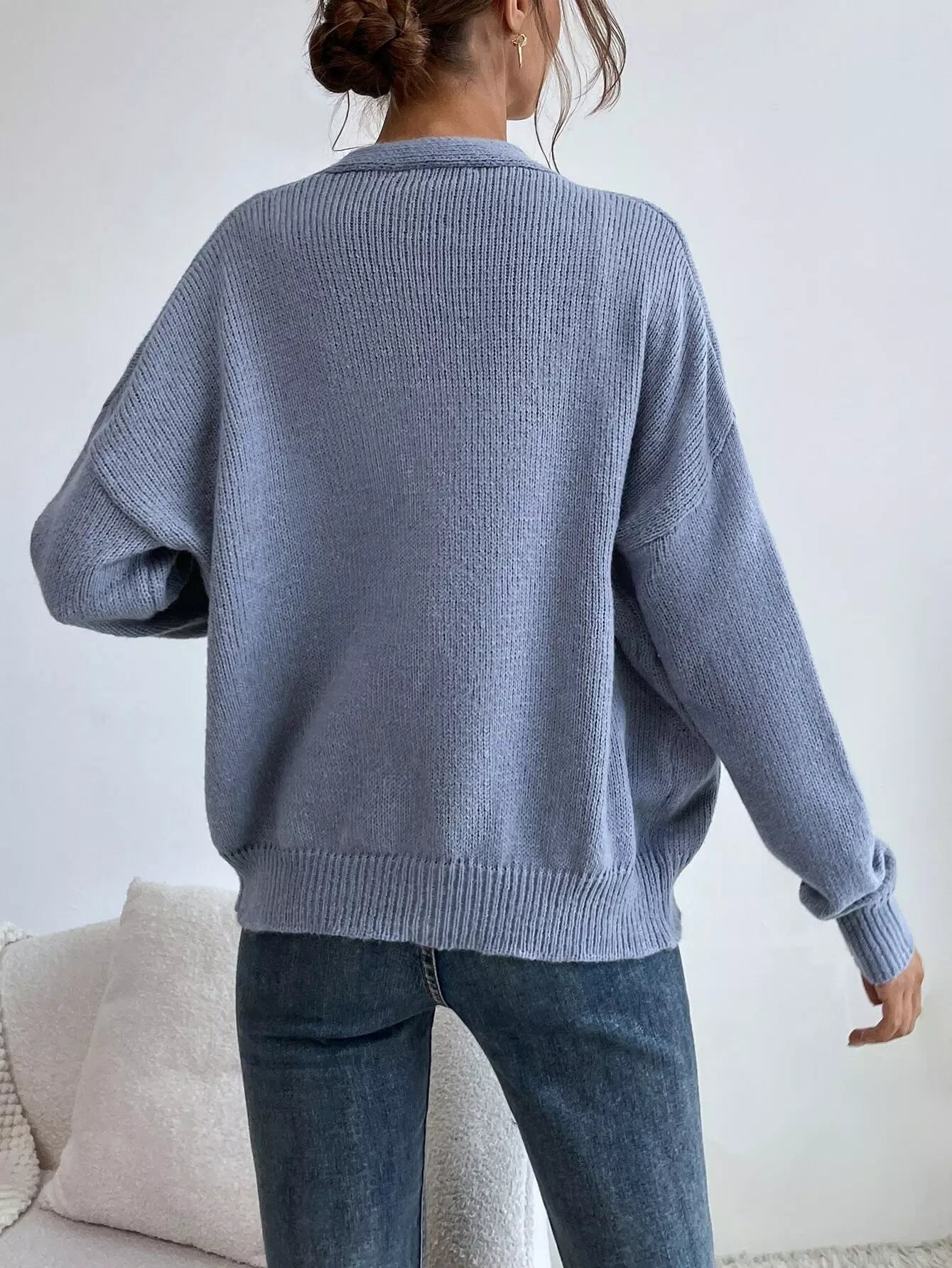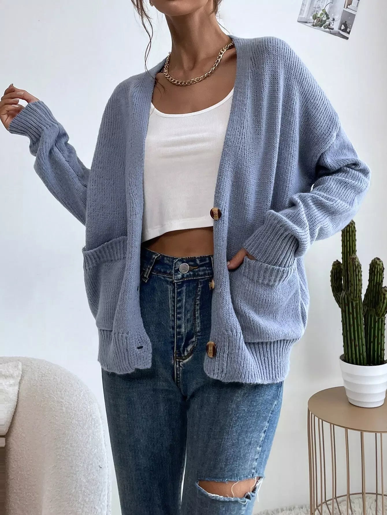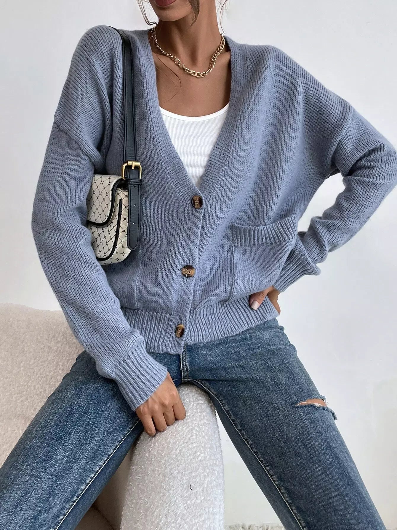 Single Breasted Drop Shoulder Patch Pocket Cardigan