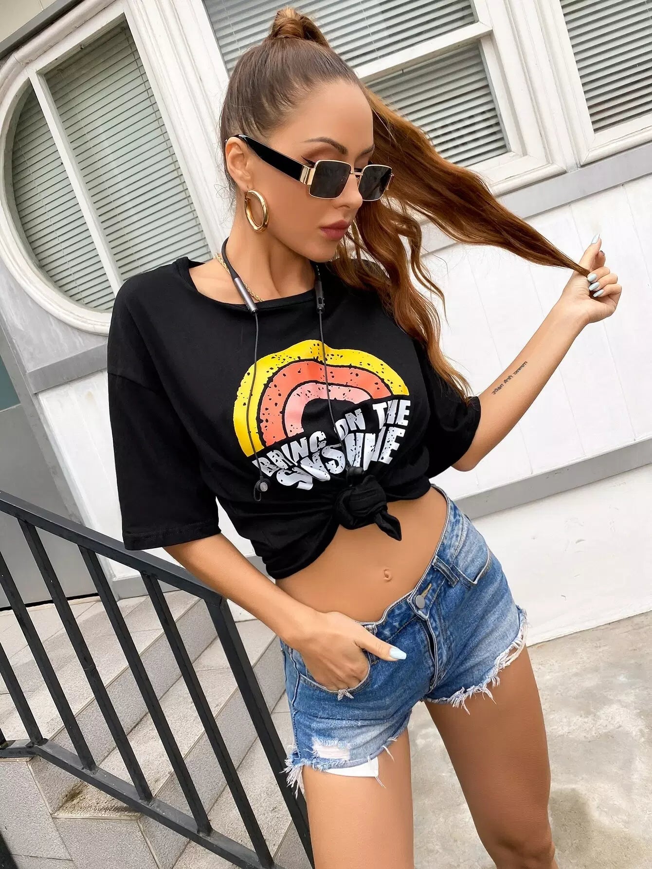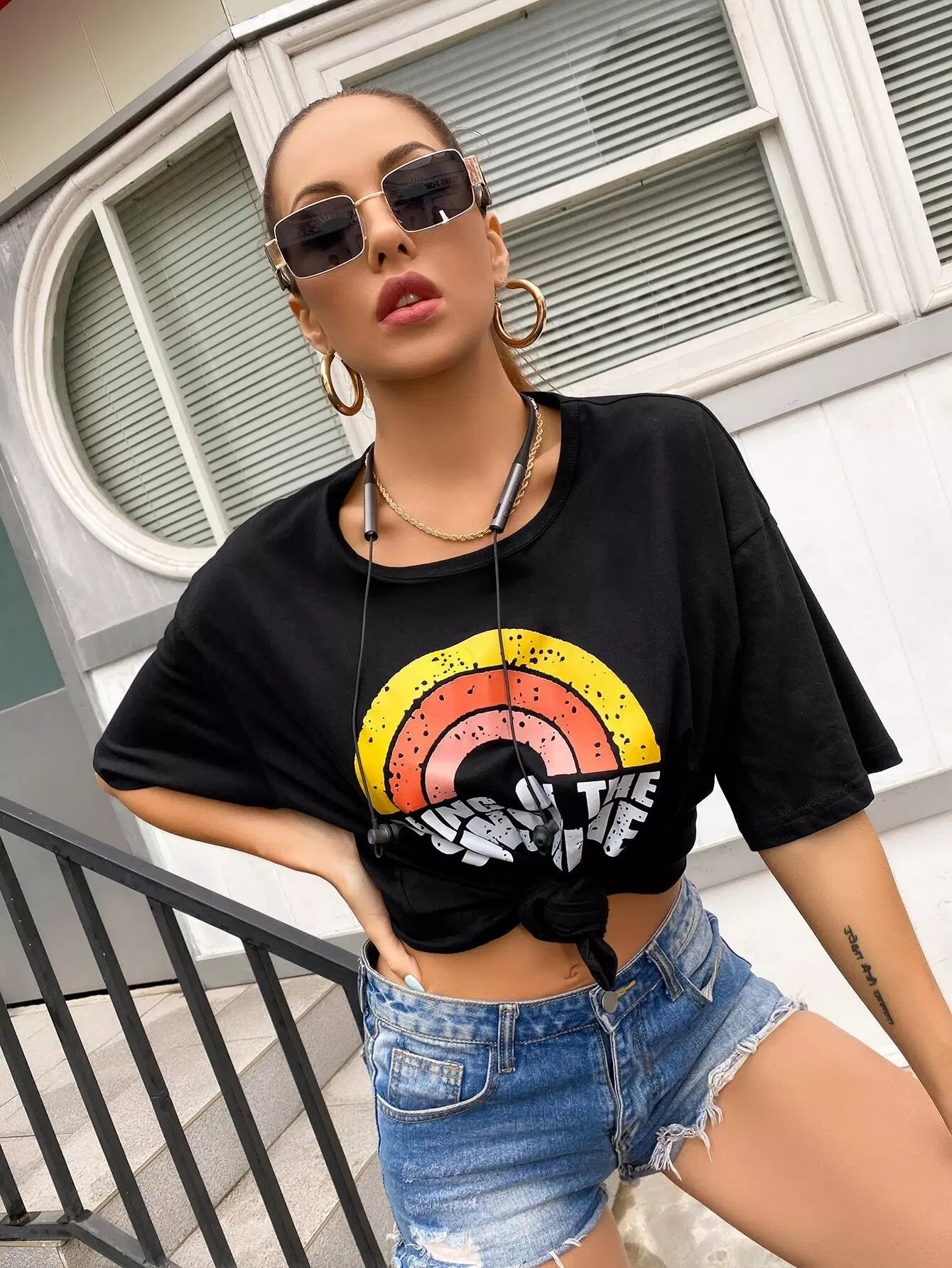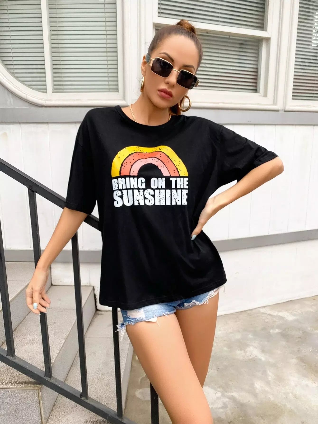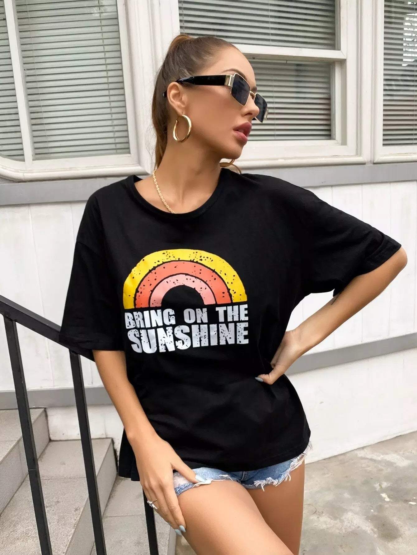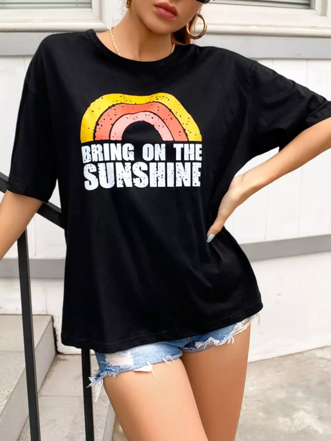 Slogan Graphic Drop Shoulder Tee