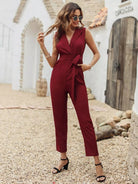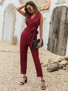 Solid Wrap Jumpsuit Without Belt