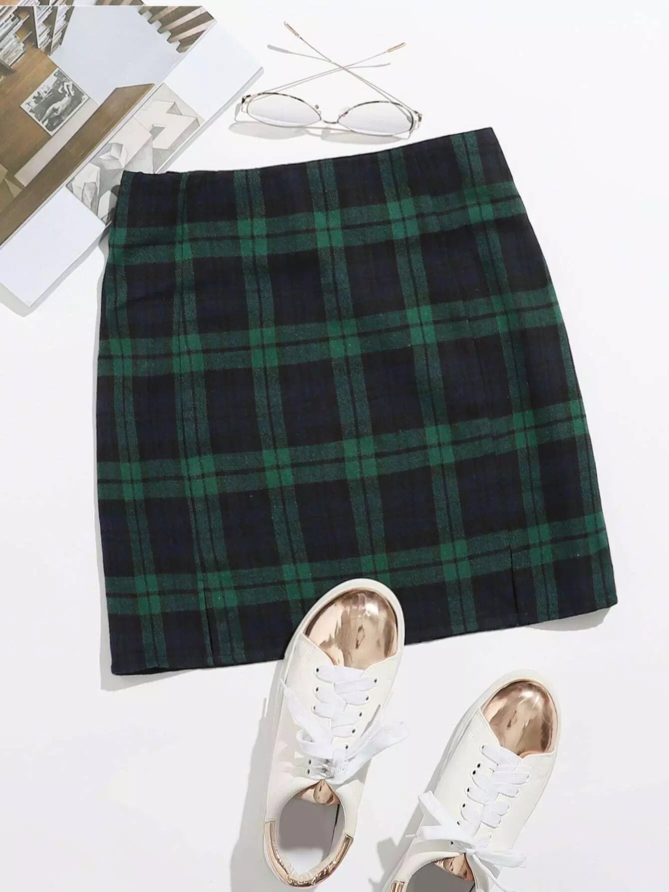 Split Hem Plaid Mini Skirt