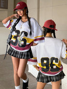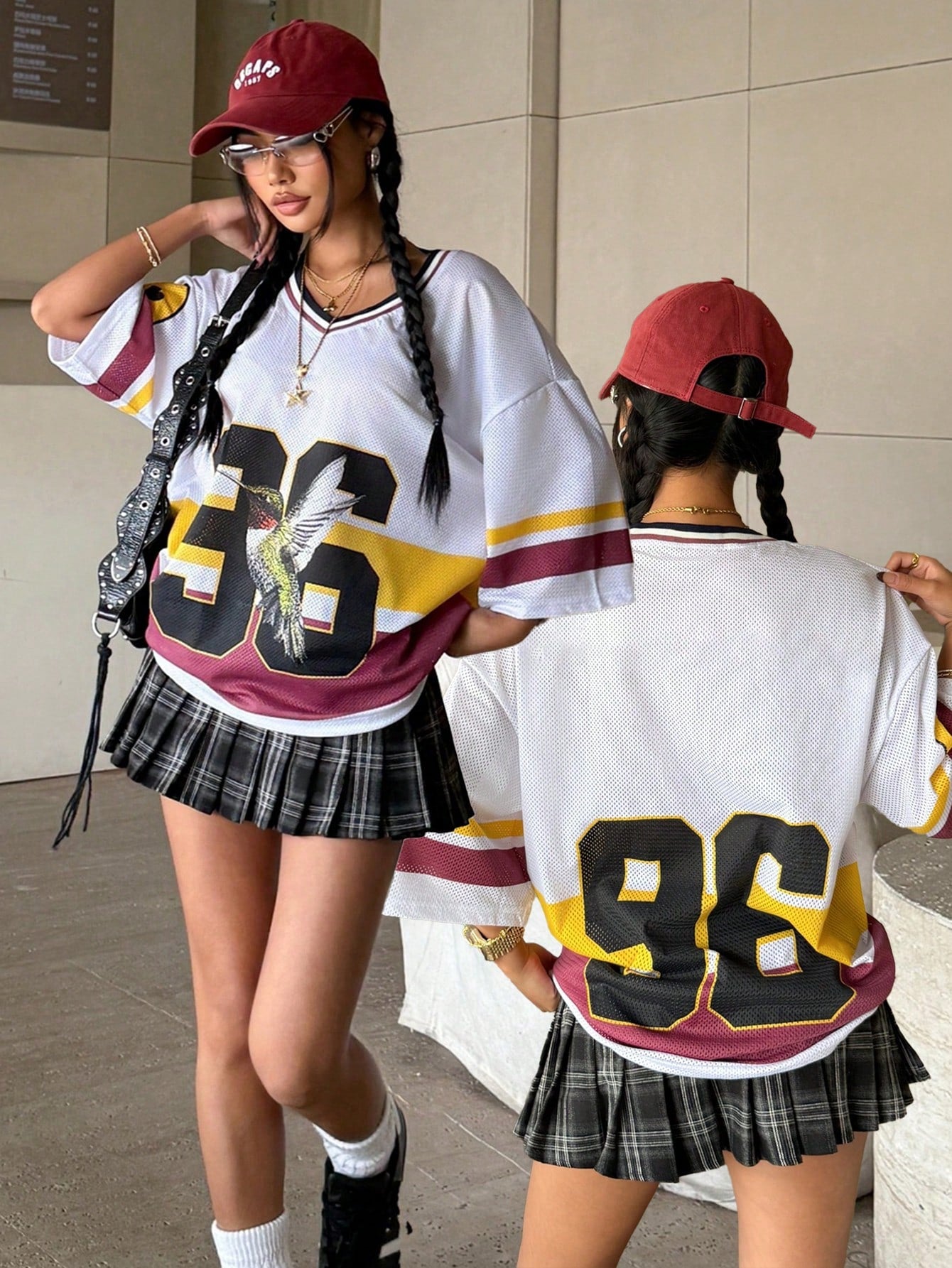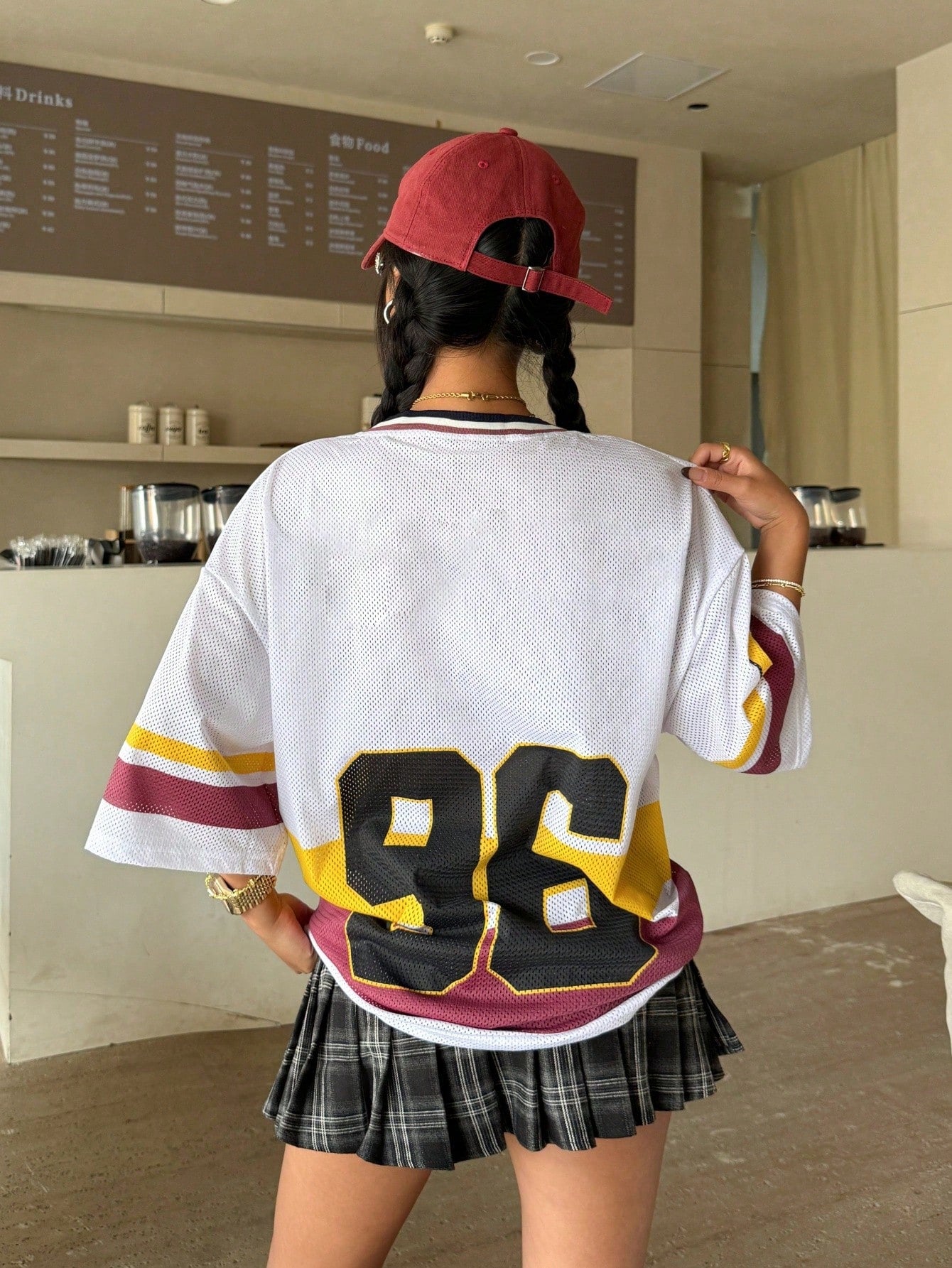 Summer Casual Loose Colorblock Striped Numeric Print T-Shirt