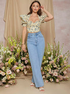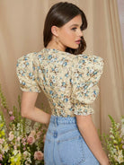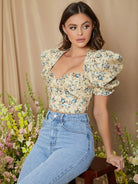 Women - Sweetheart Neck Puff Sleeve Floral Top