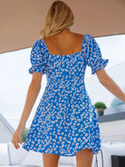 Sweetheart Neck Ruched Knot Front Daisy Floral Dress