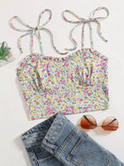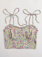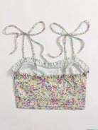 Women - Tied Shoulder Frilled Ditsy Floral Crop Cami Top