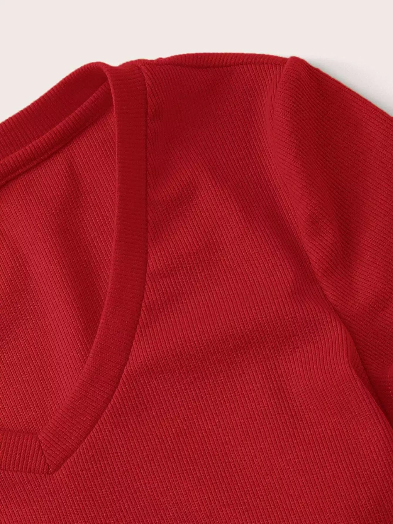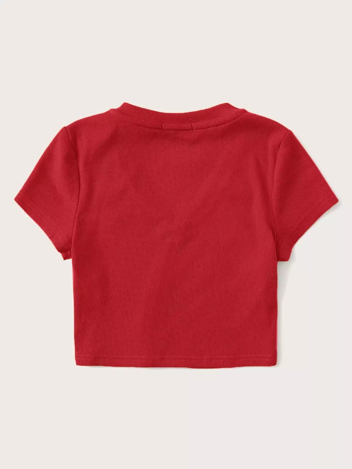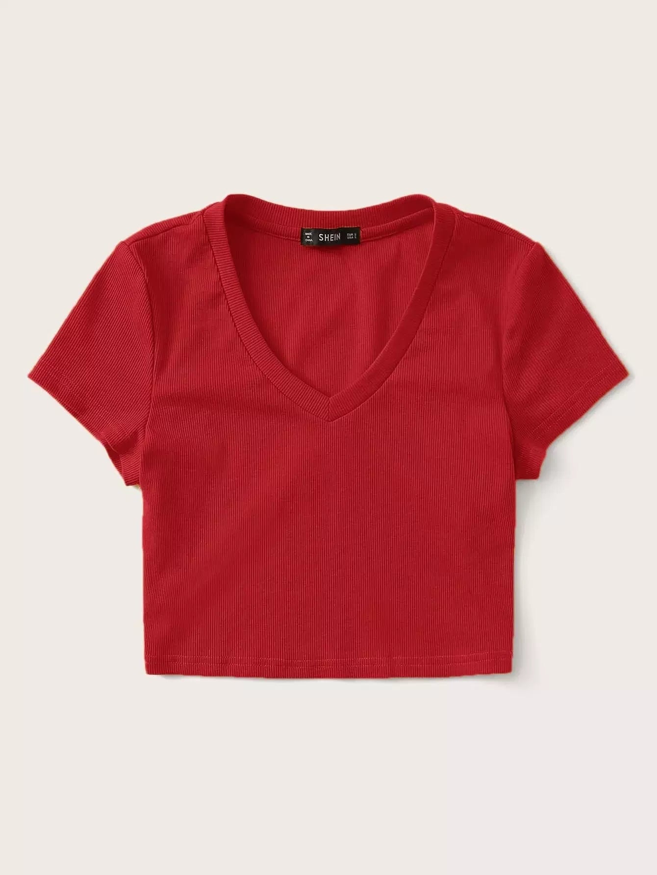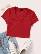 V-neck Rib-knit Fitted Crop Tee