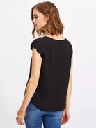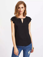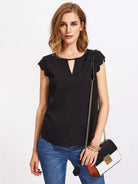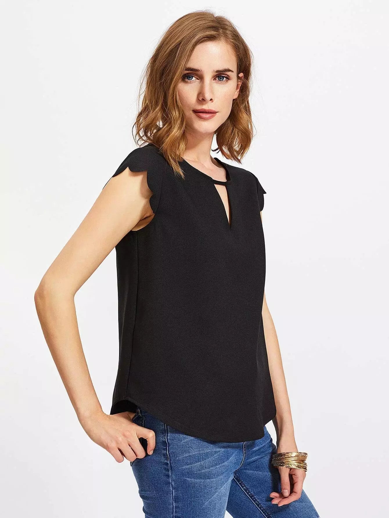 V Notch Front Scallop Cap Sleeve Dolphin Hem Top