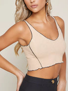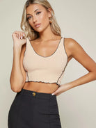 Waffle Knit Lettuce-Edge Cropped Tank Top