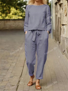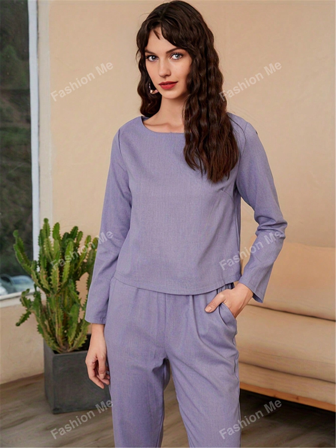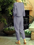 Women Plain Color Long Sleeve And Long Pants 2pcs Casual Outfit Set