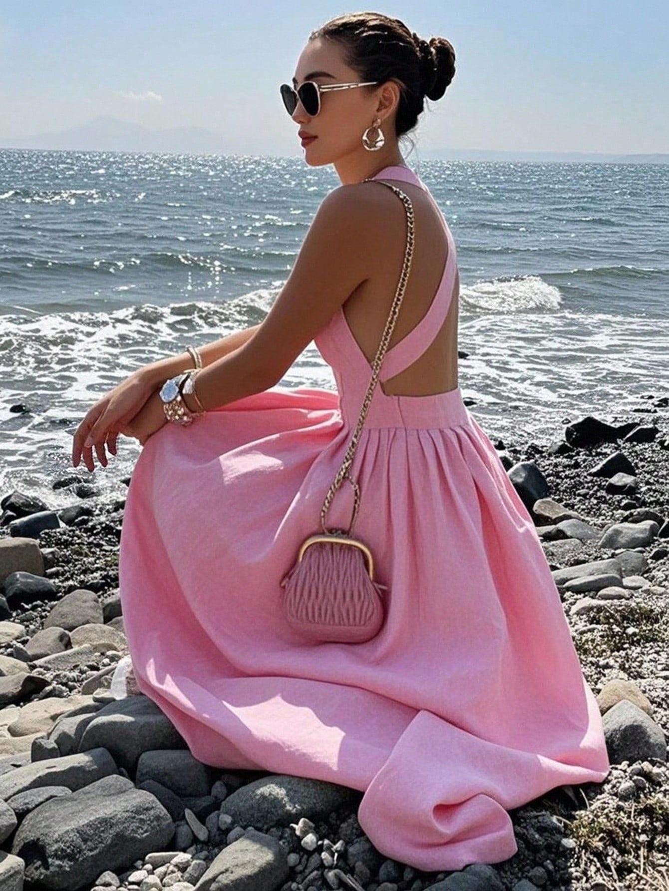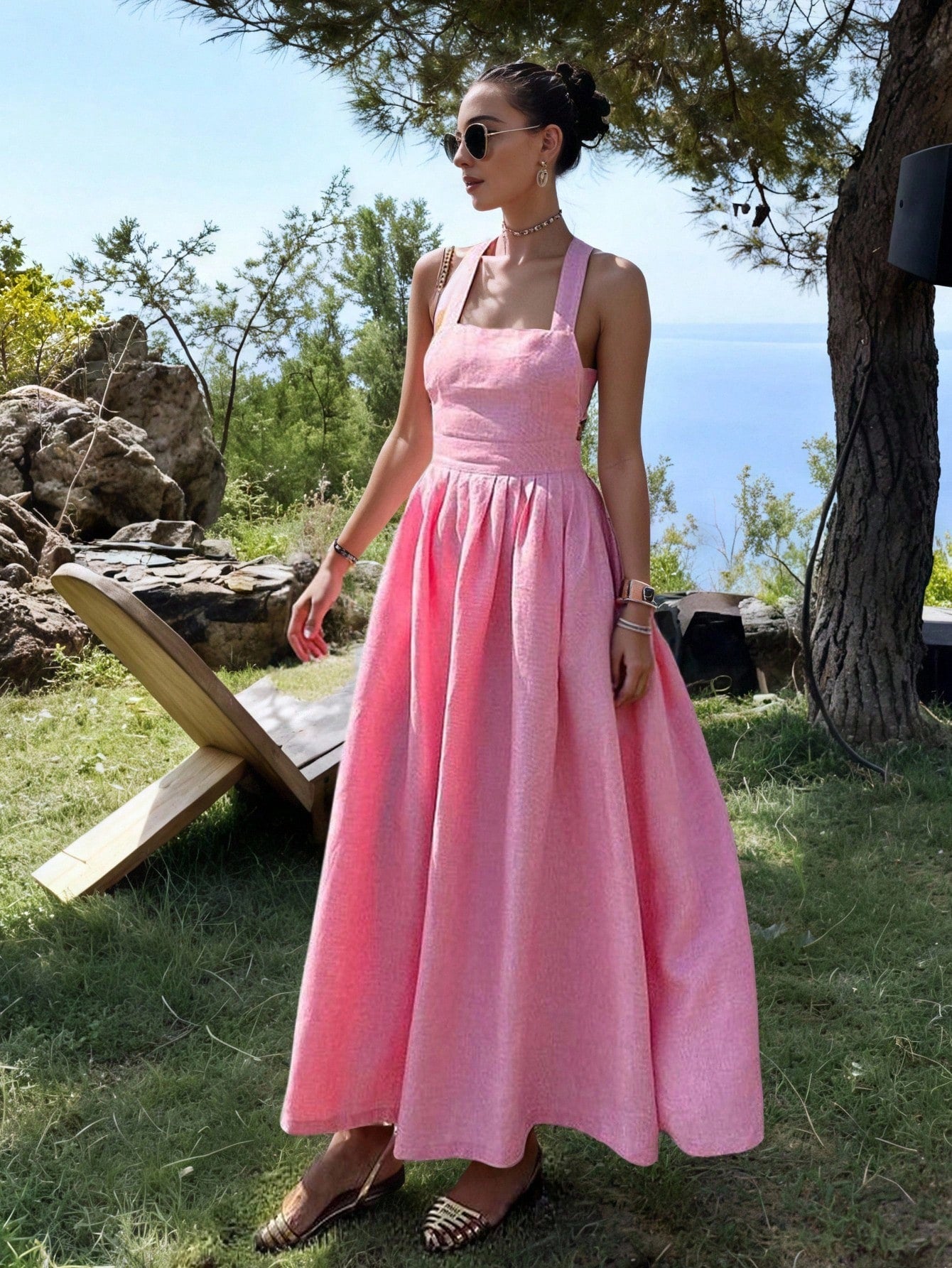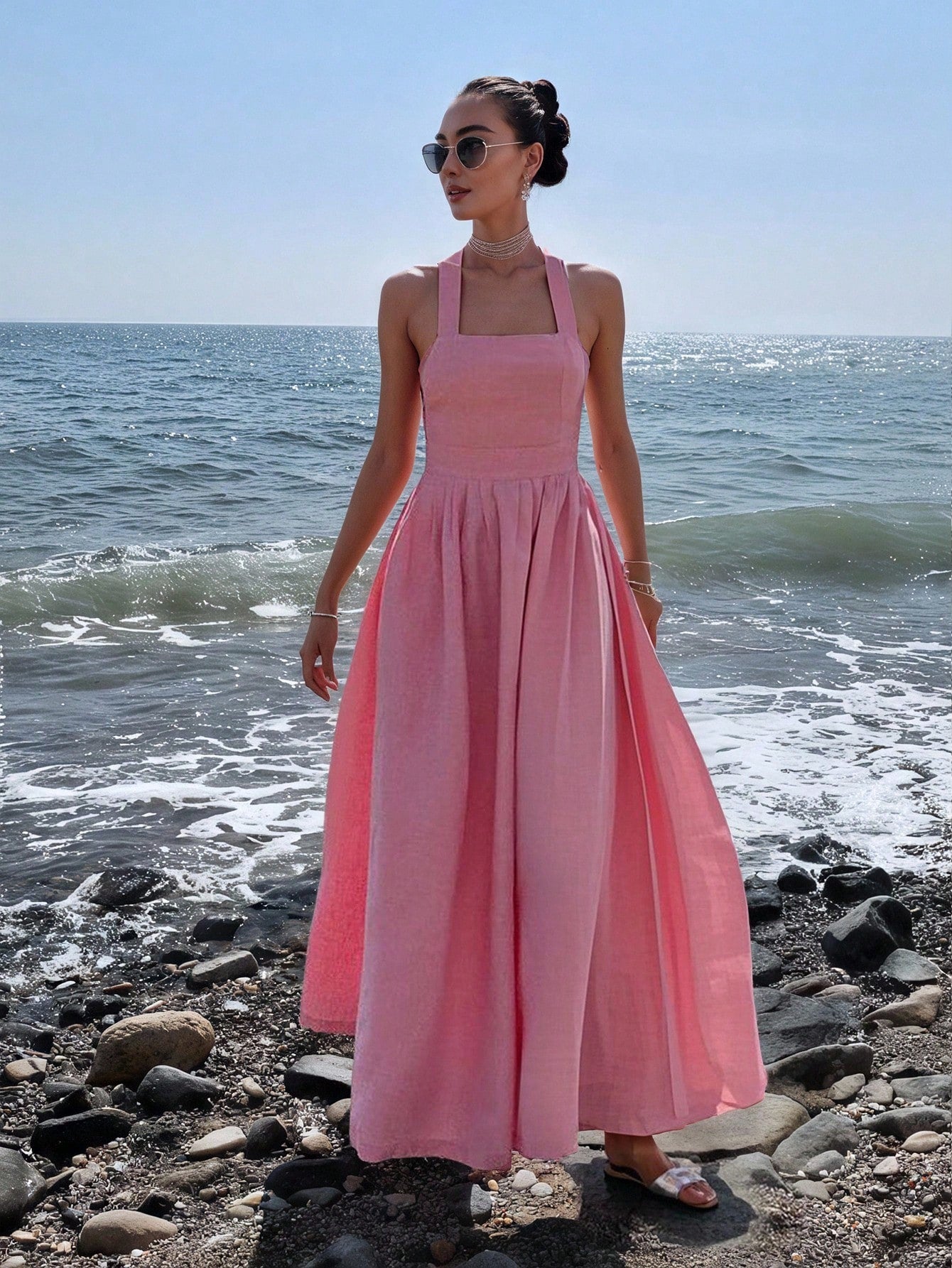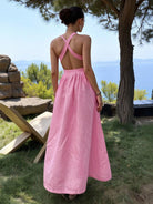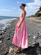 Women's Solid Color Backless Sleeveless Square Neck Summer Elegant Dress