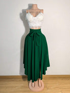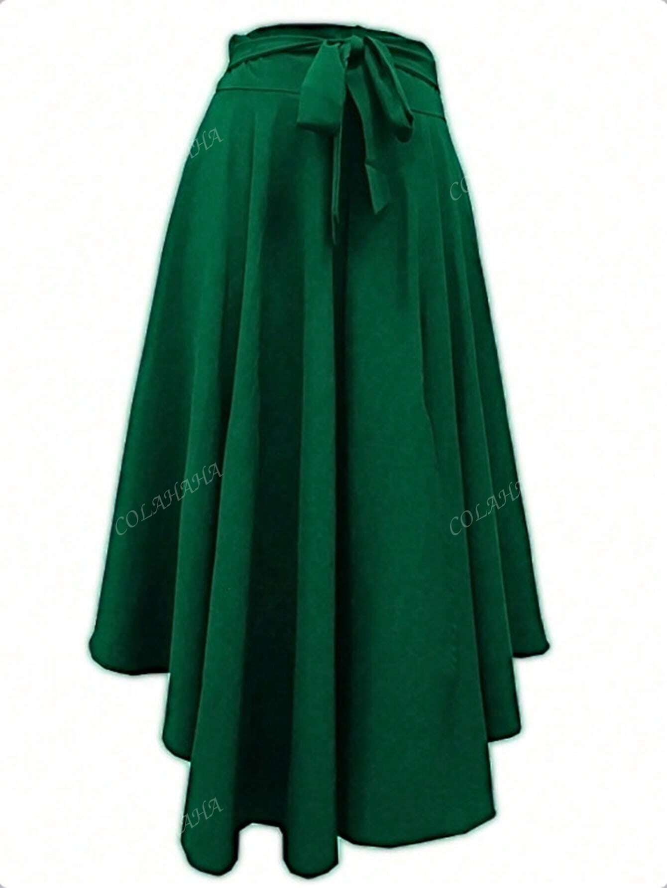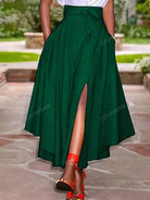 Women's Spring/Summer Knee Length Knotted Waist Plain Color Split Hem Skirt