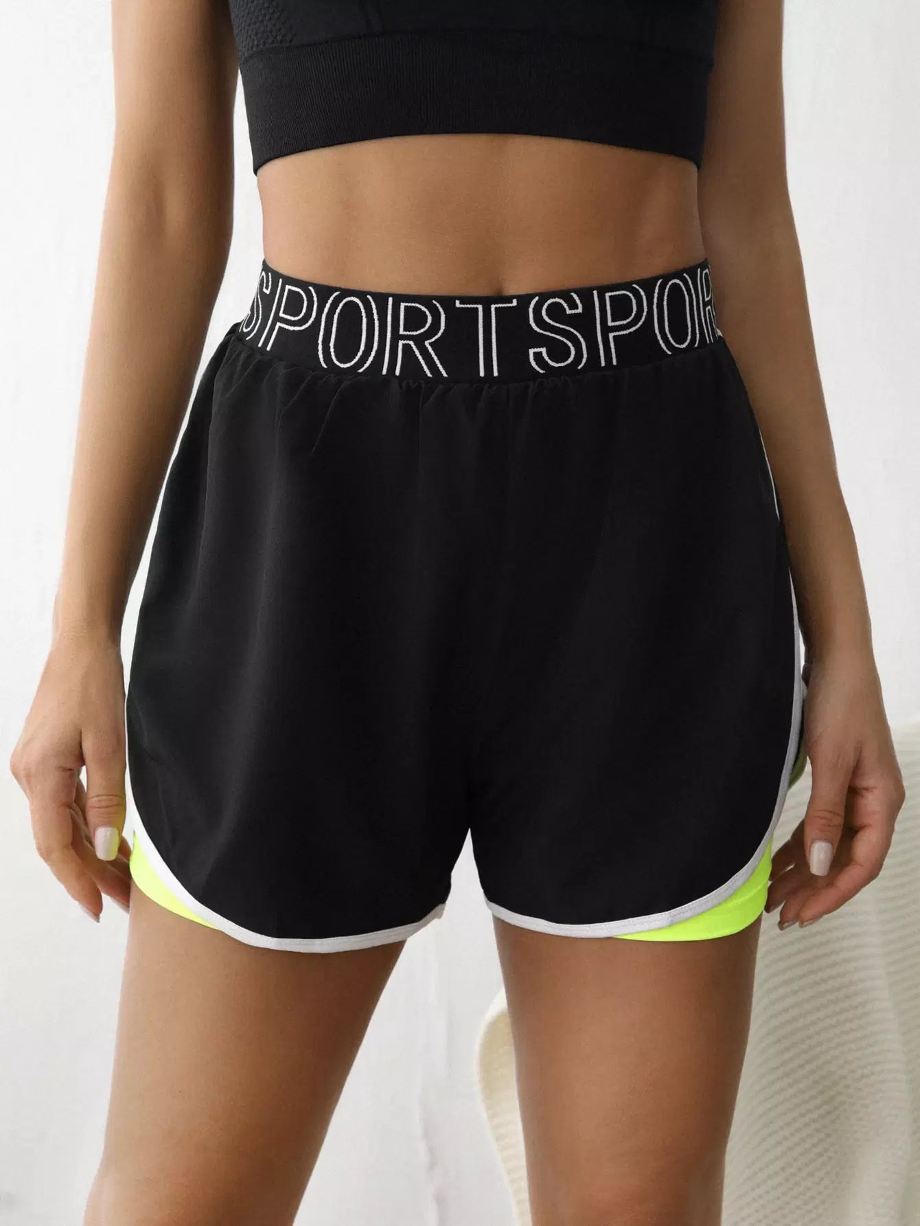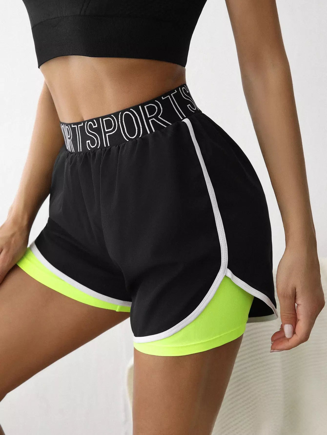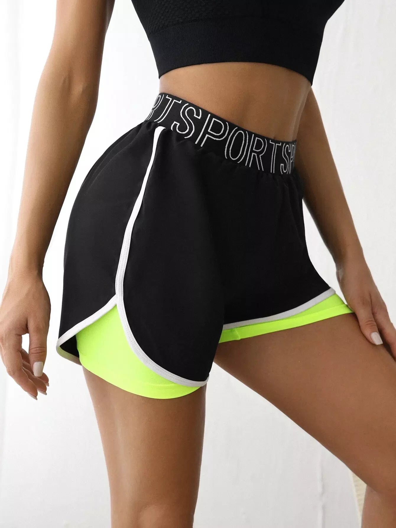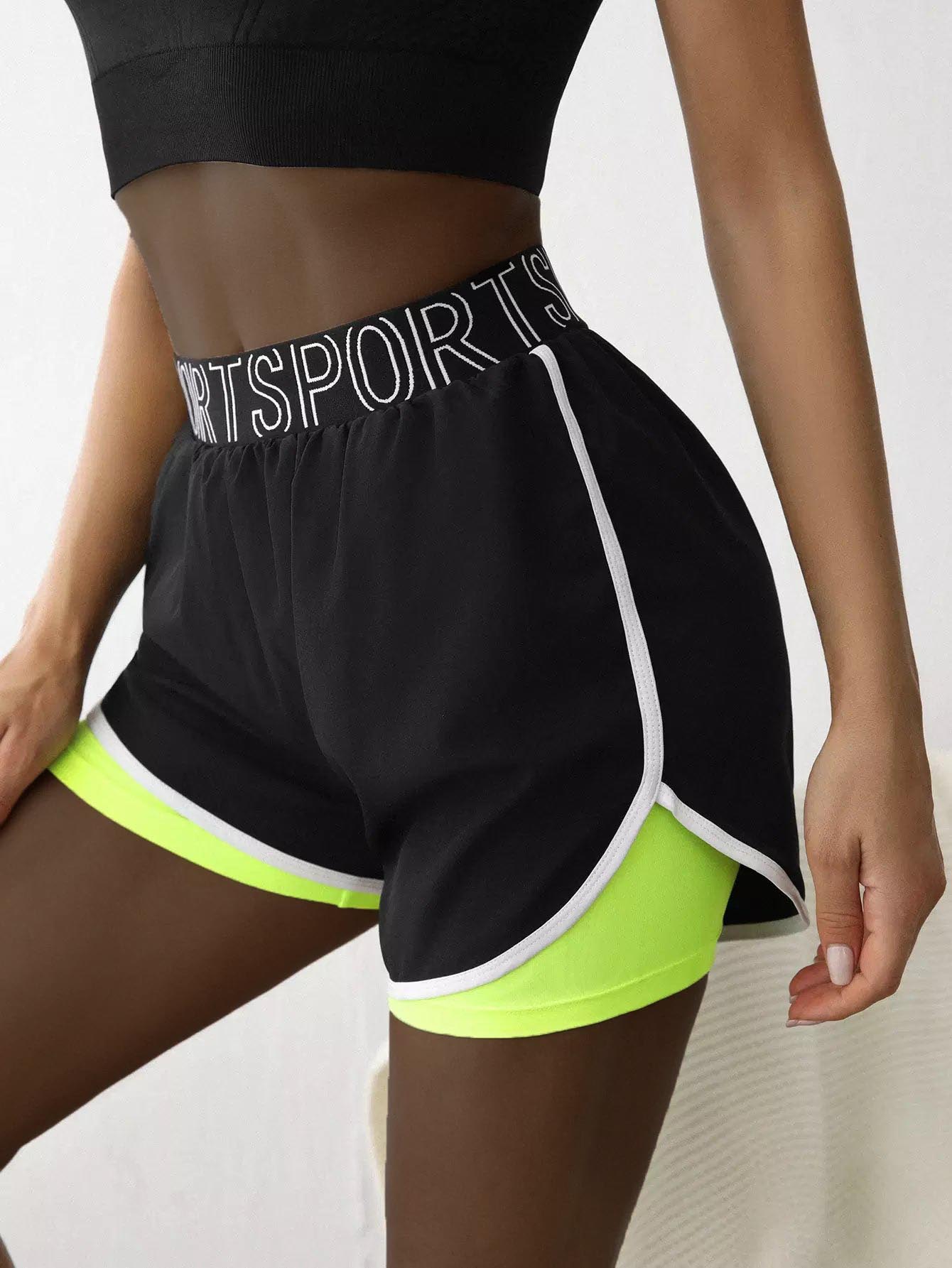 2 In 1 Contrast Binding Sports Shorts