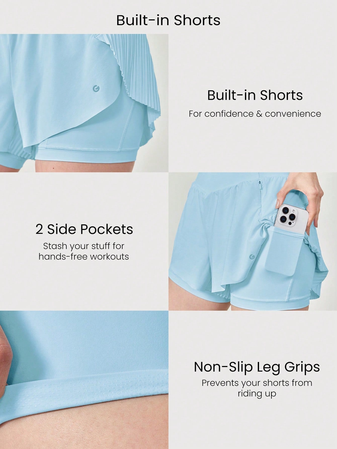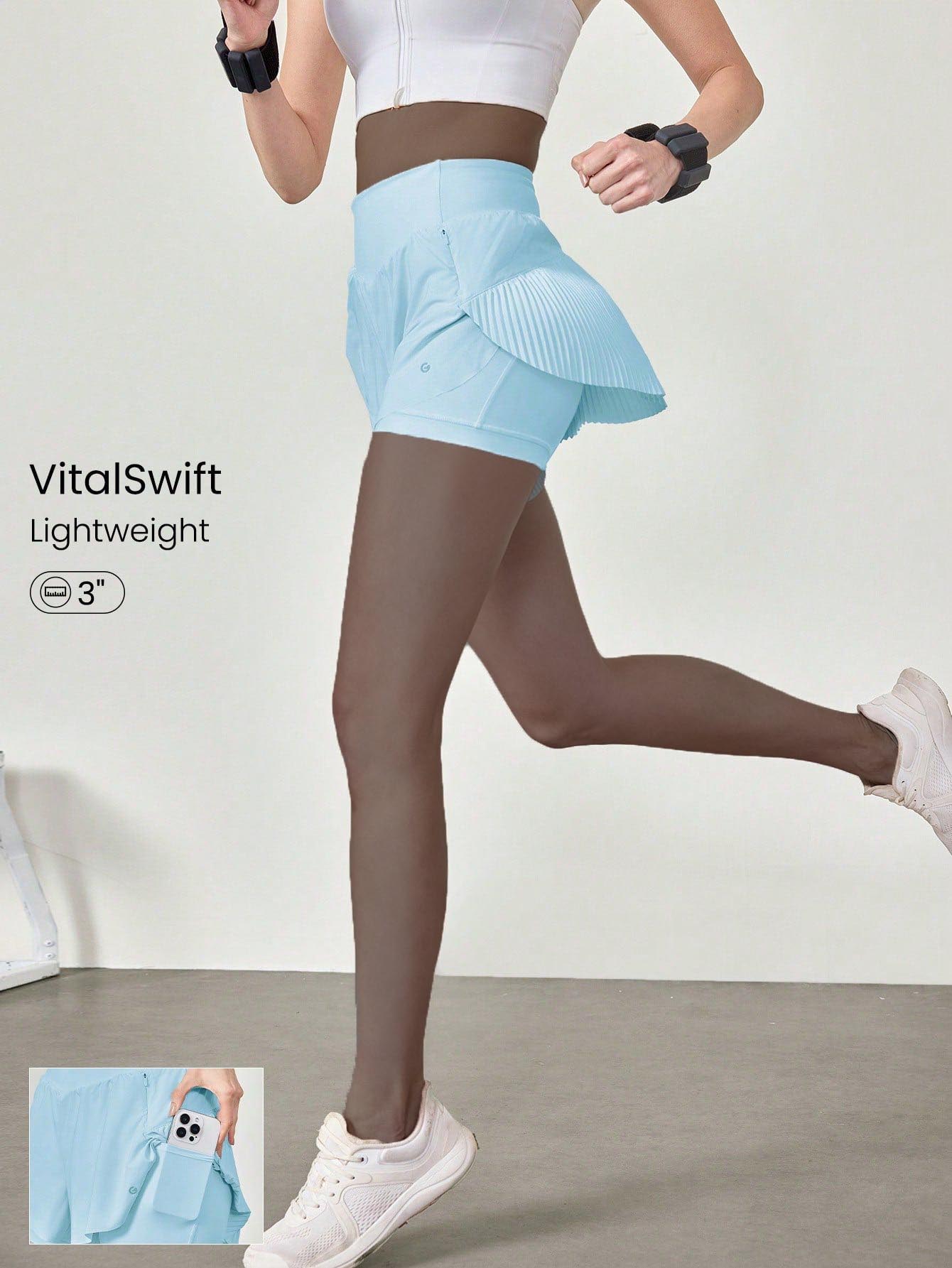 GLOWMODE 3" VitalSwift Speedwork Quick-Dry High-Rise Waist Pleated Skirt Style Running Shorts With Side Zip Pockets Built-In Shorts Medium Impact Running Jogging Training Gym Workout