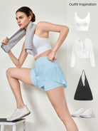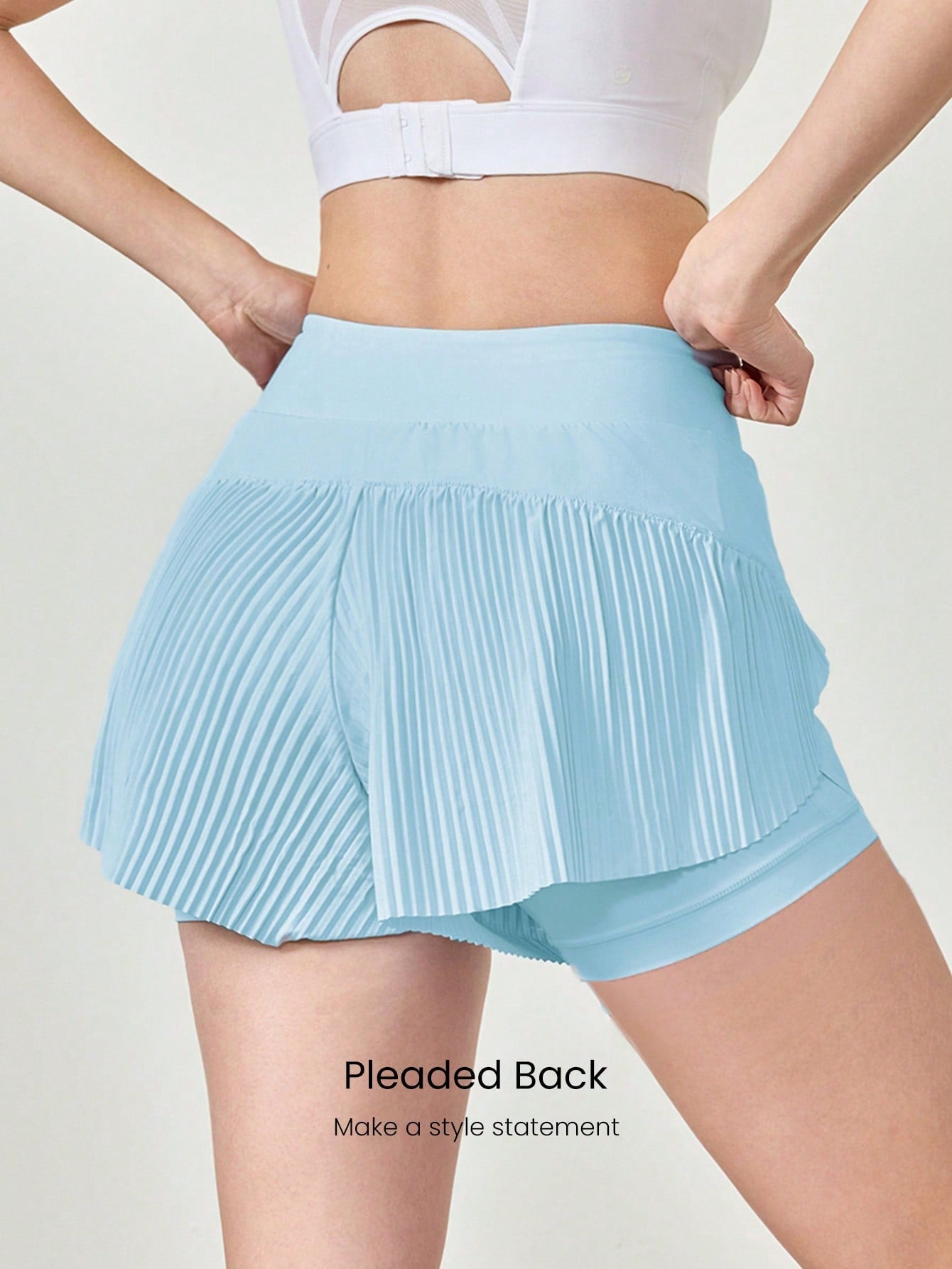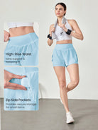 women GLOWMODE 3" VitalSwift Speedwork Quick-Dry High-Rise Waist Pleated Skirt Style Running Shorts With Side Zip Pockets Built-In Shorts Medium Impact Running Jogging Training Gym Workout