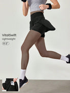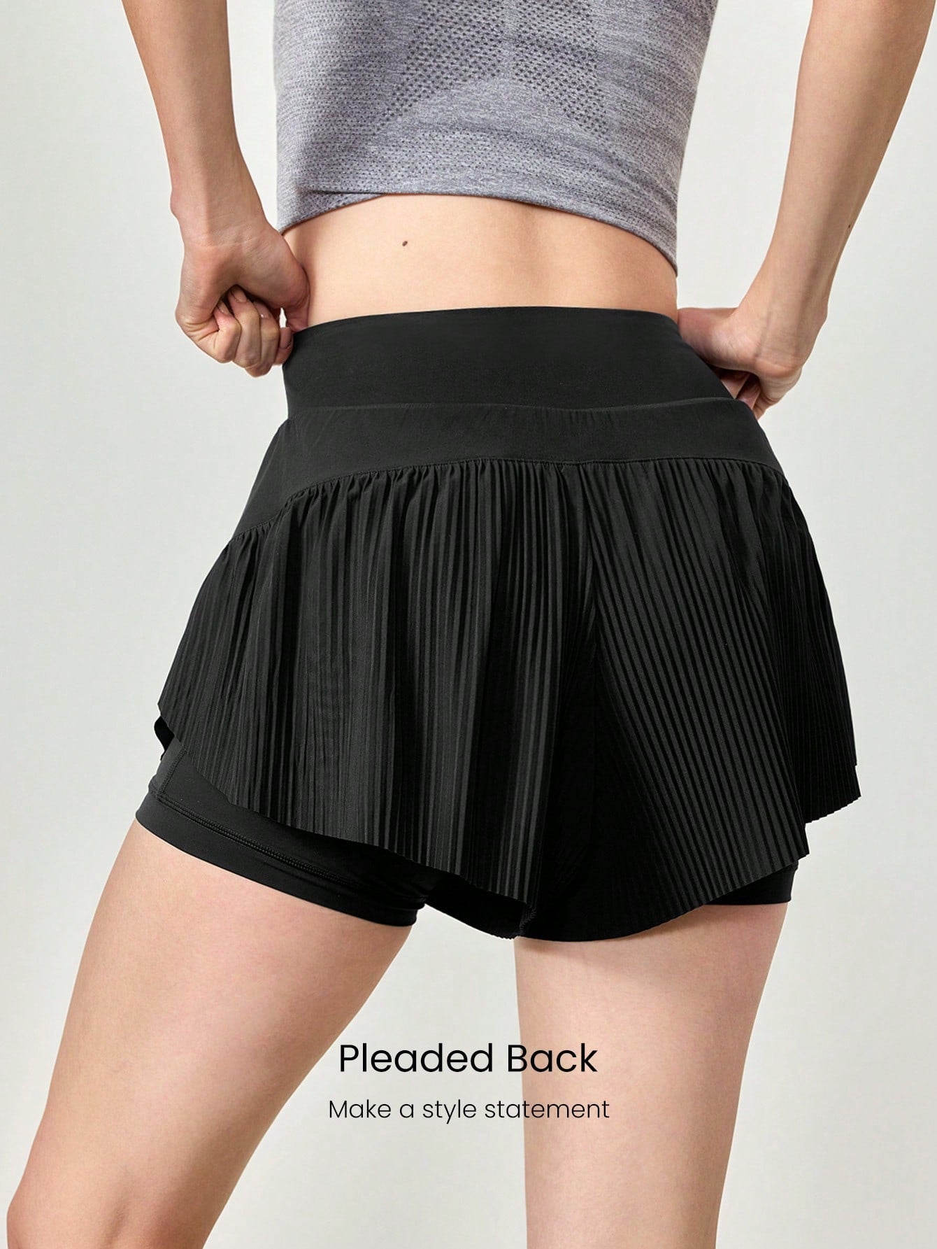women GLOWMODE 3" VitalSwift Speedwork Quick-Dry High-Rise Waist Pleated Skirt Style Running Shorts With Side Zip Pockets Built-In Shorts Medium Impact Running Jogging Training Gym Workout