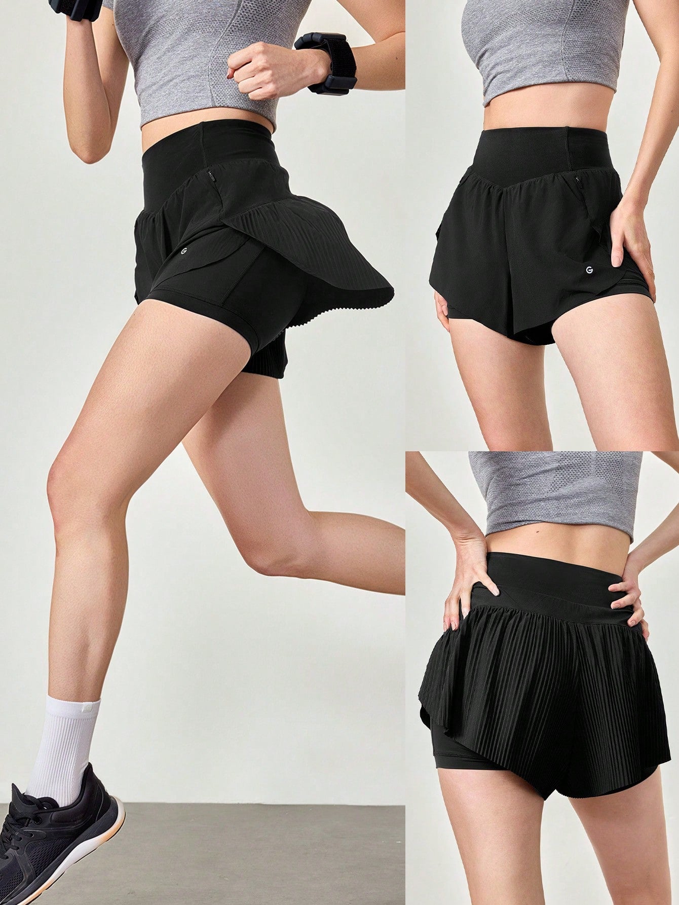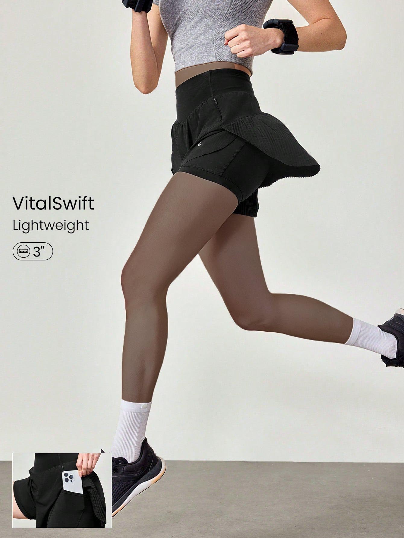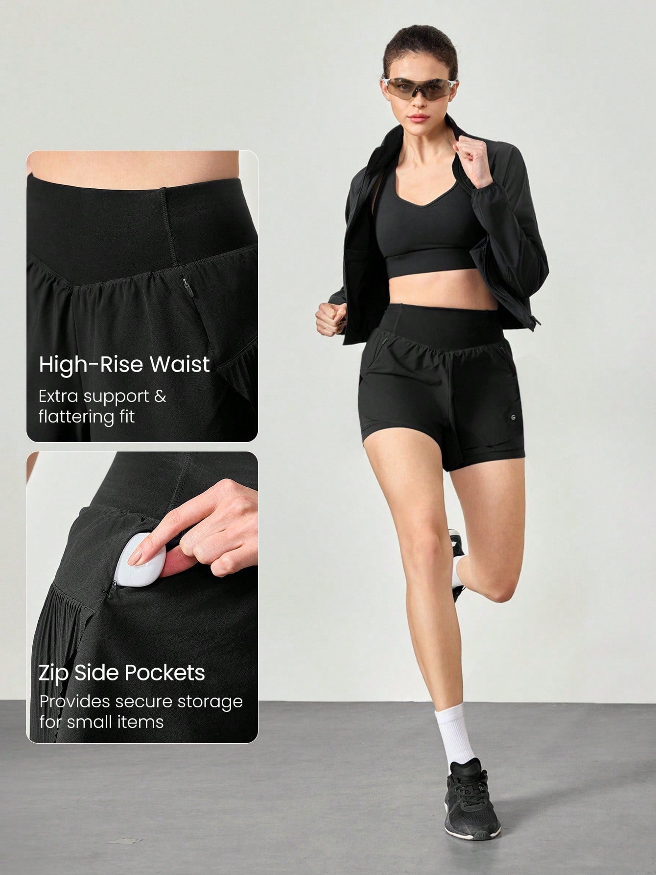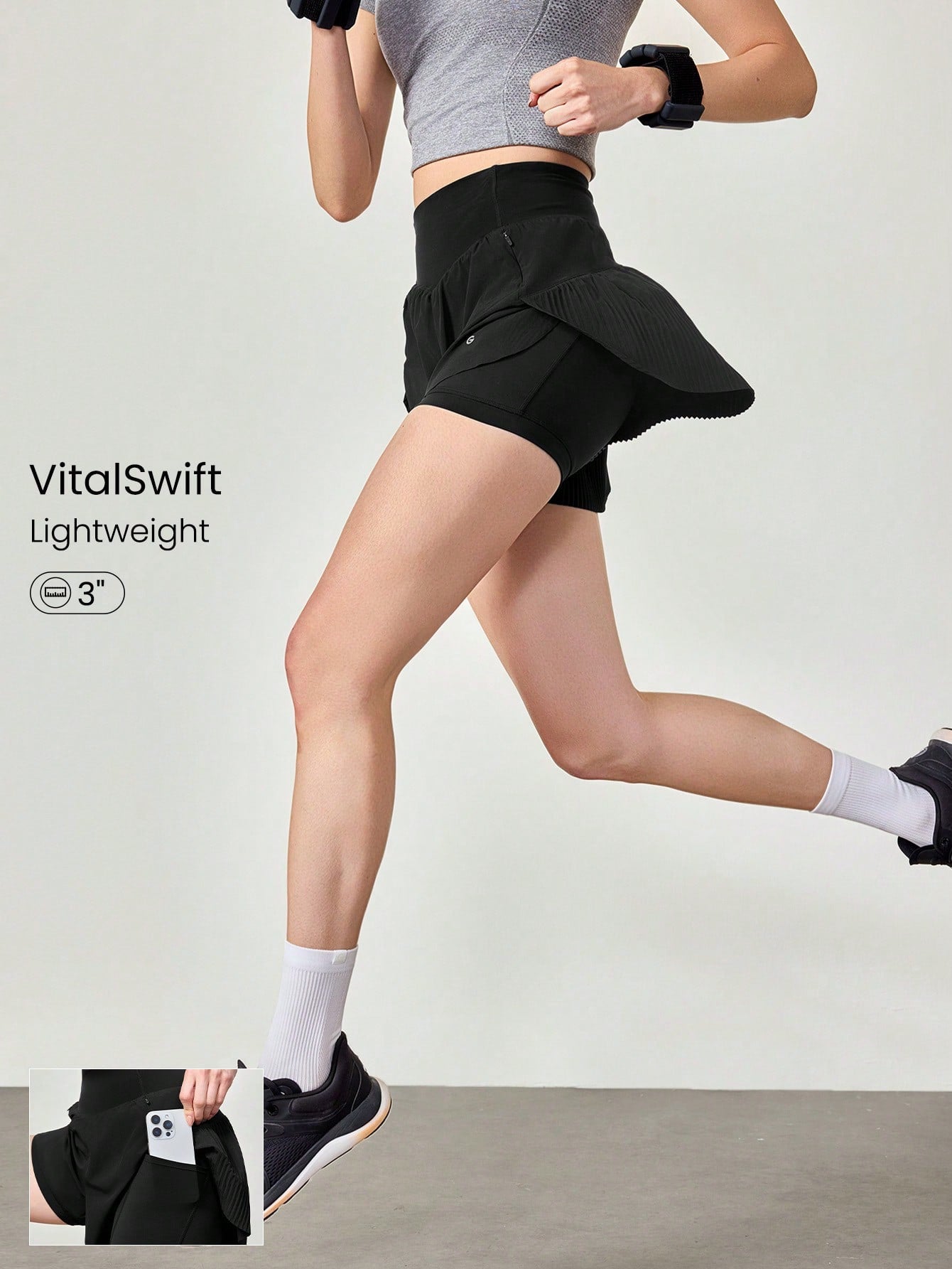 GLOWMODE 3" VitalSwift Speedwork Quick-Dry High-Rise Waist Pleated Skirt Style Running Shorts With Side Zip Pockets Built-In Shorts Medium Impact Running Jogging Training Gym Workout