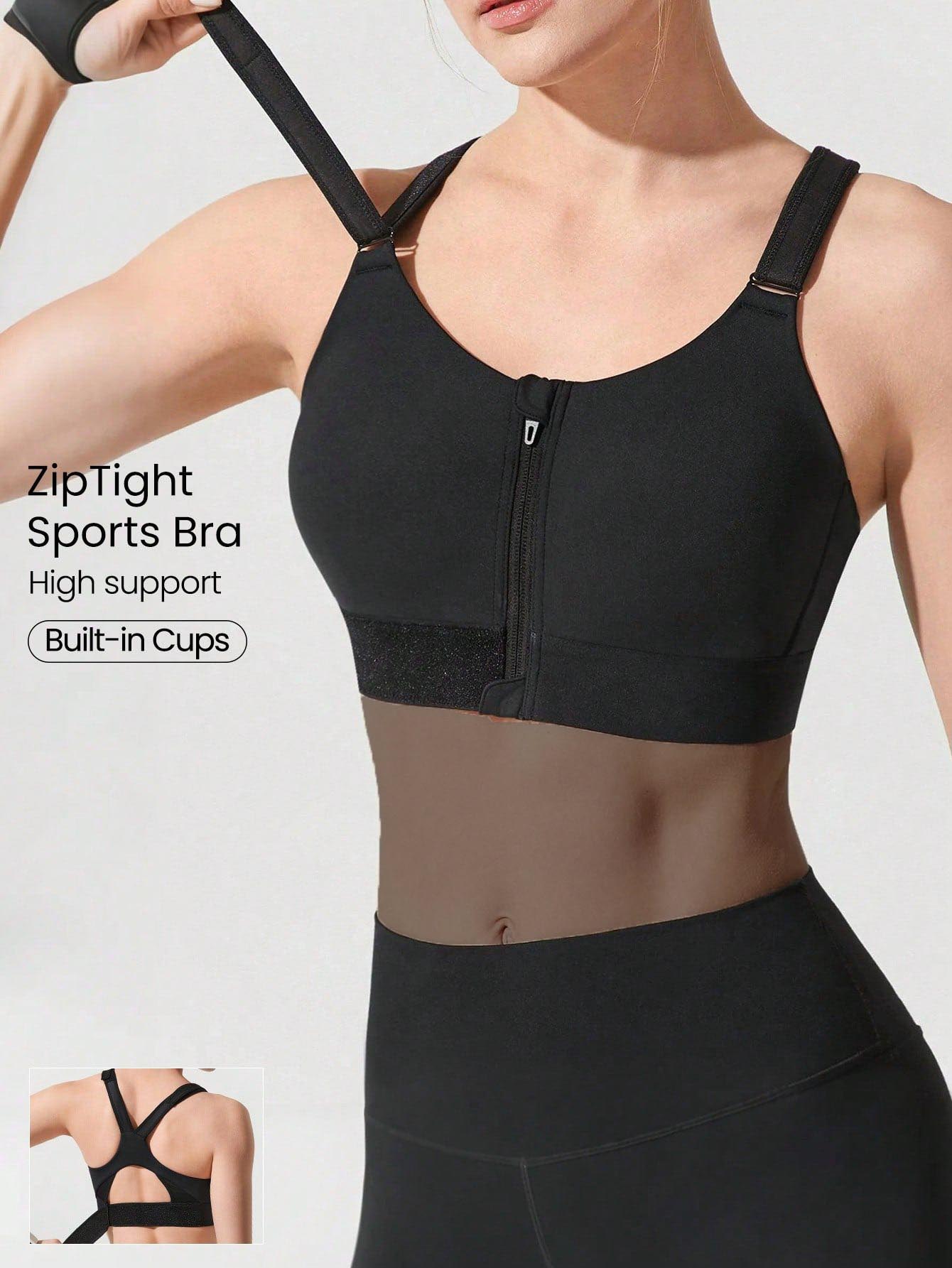 GLOWMODE Make An Impact Quick Dry Foam Cup Mesh Zipper Front Sports Bra High Impact Running Jogging Workout