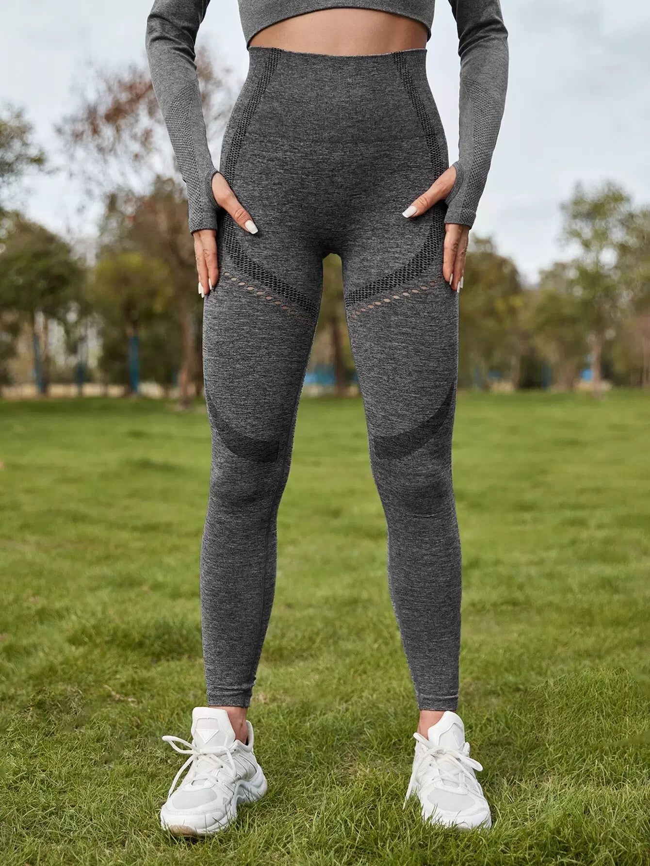 Hollow Out Wide Band Waist Sports Leggings