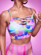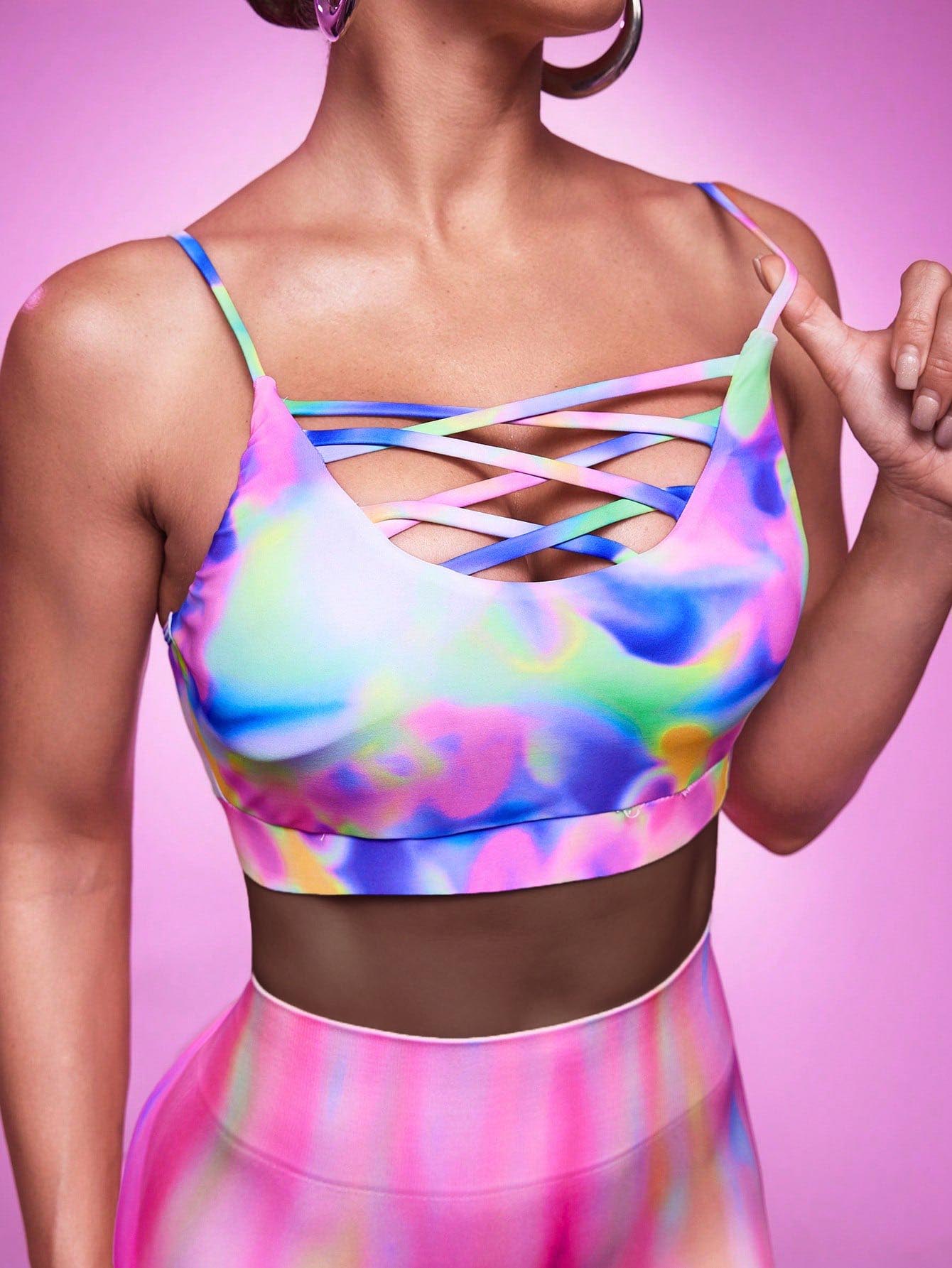 Menodora Sport Women's Fashion Tie-Dye Print Hollow-Out Sports Bra
