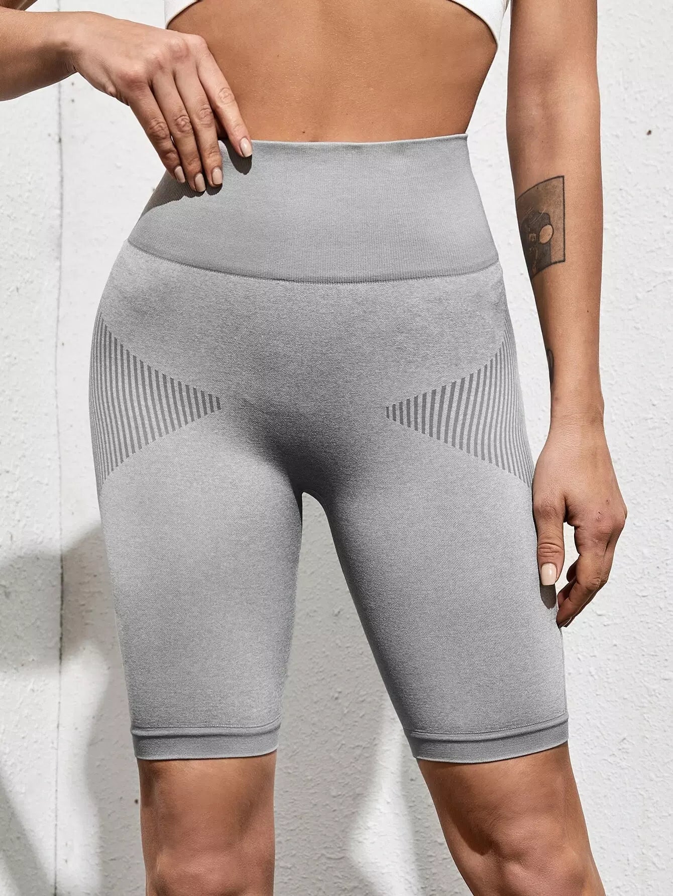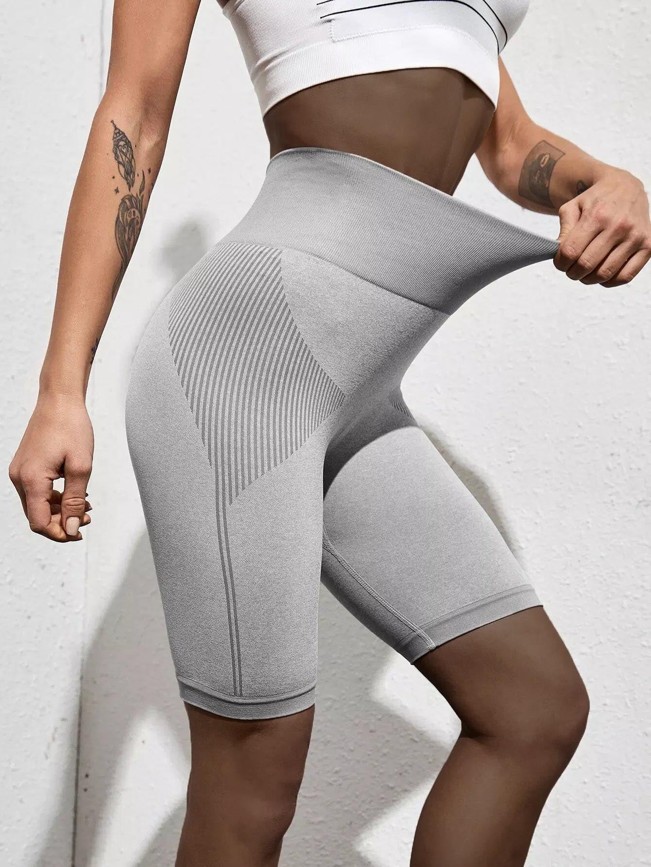 Seamless Striped Wide Band Waist Sports Shorts