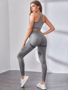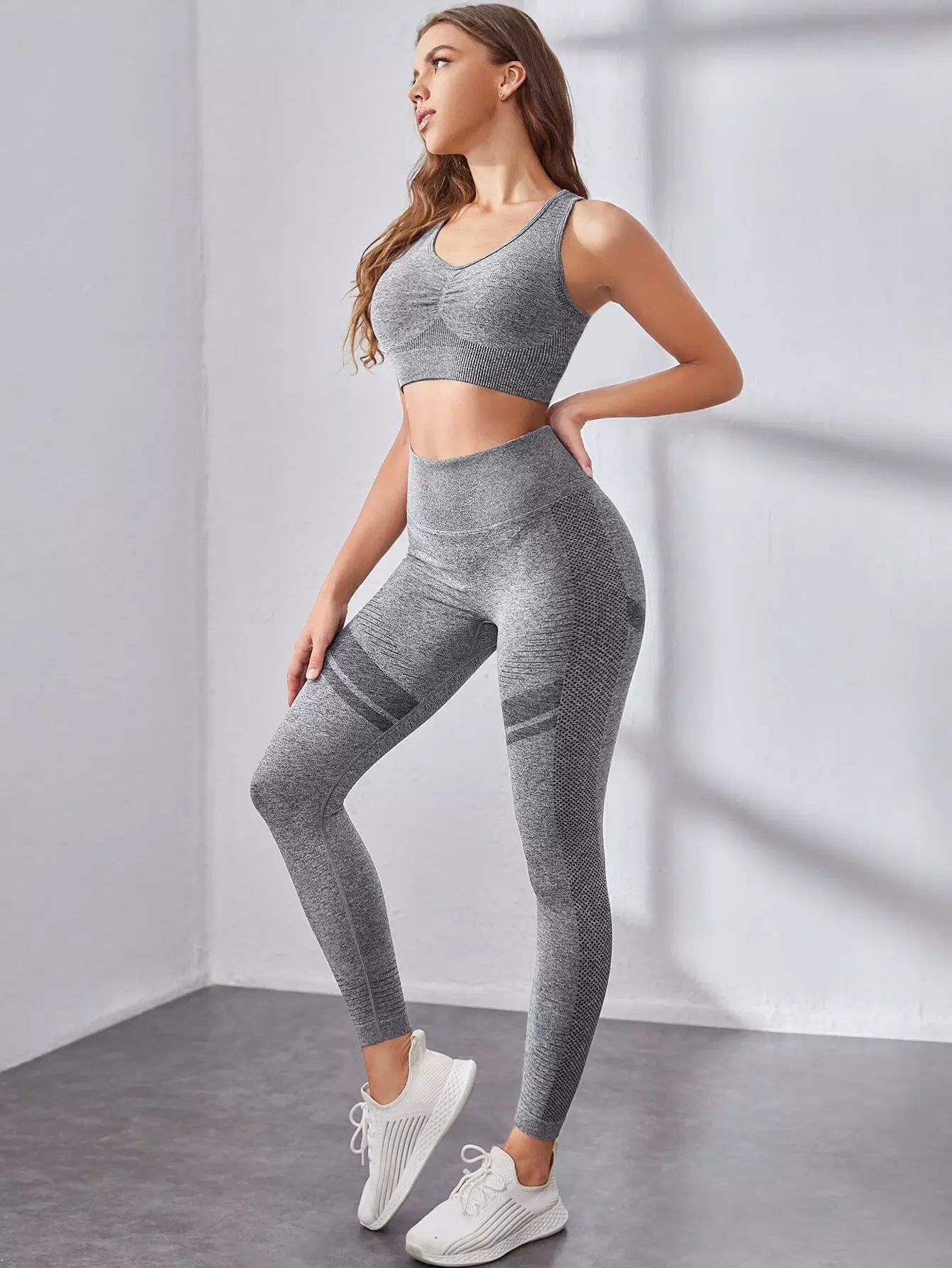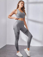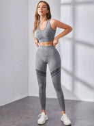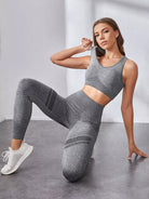 Solid Rib-knit Sports Tee & Wide Band Waist Sports Leggings