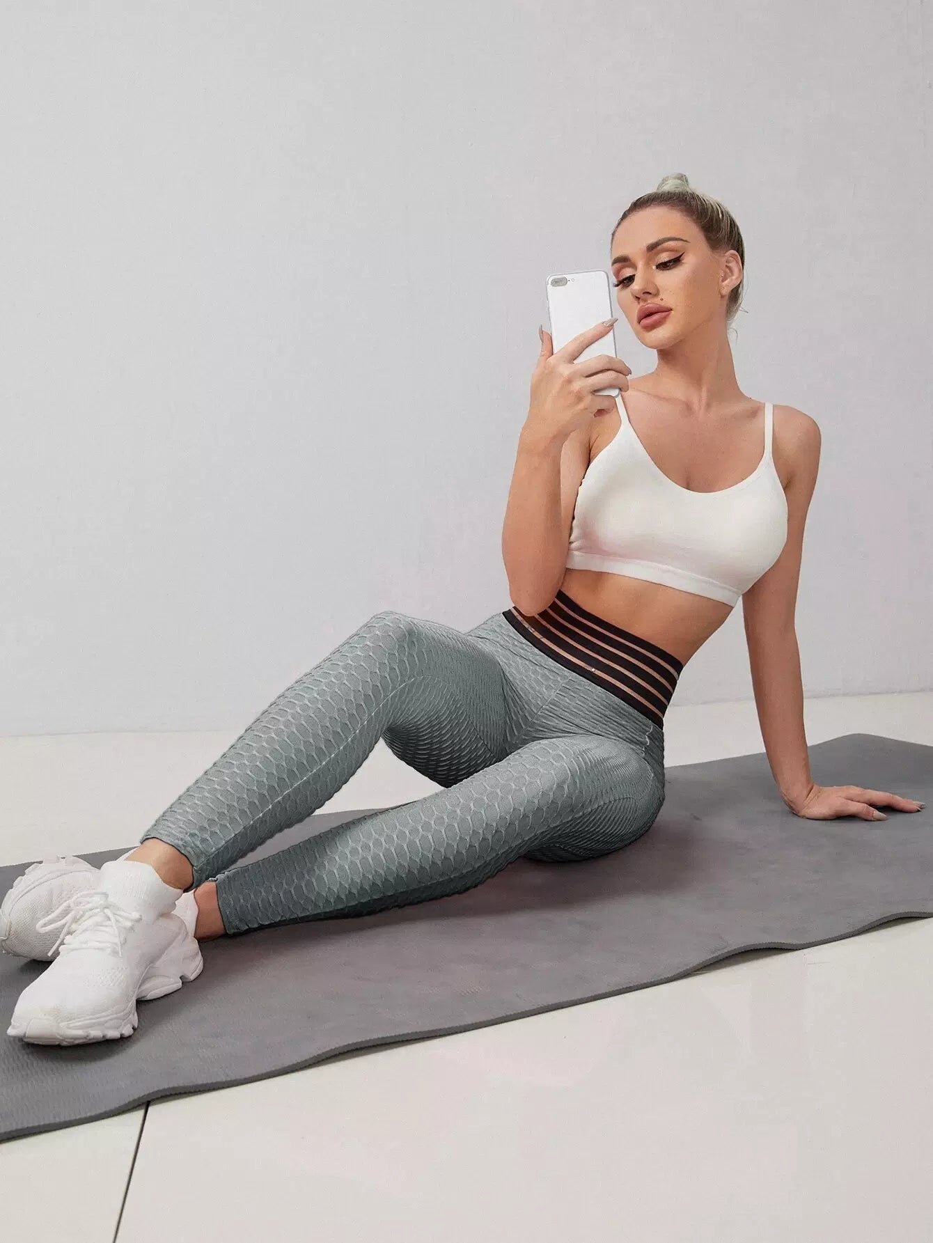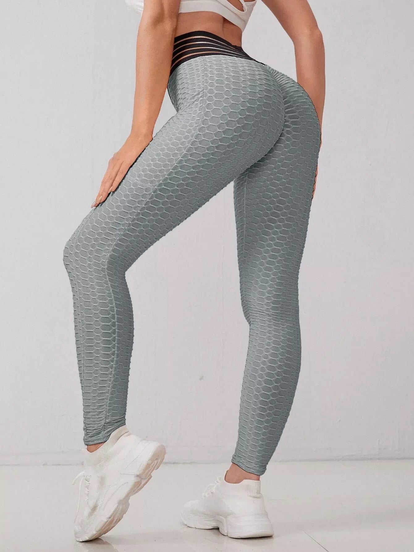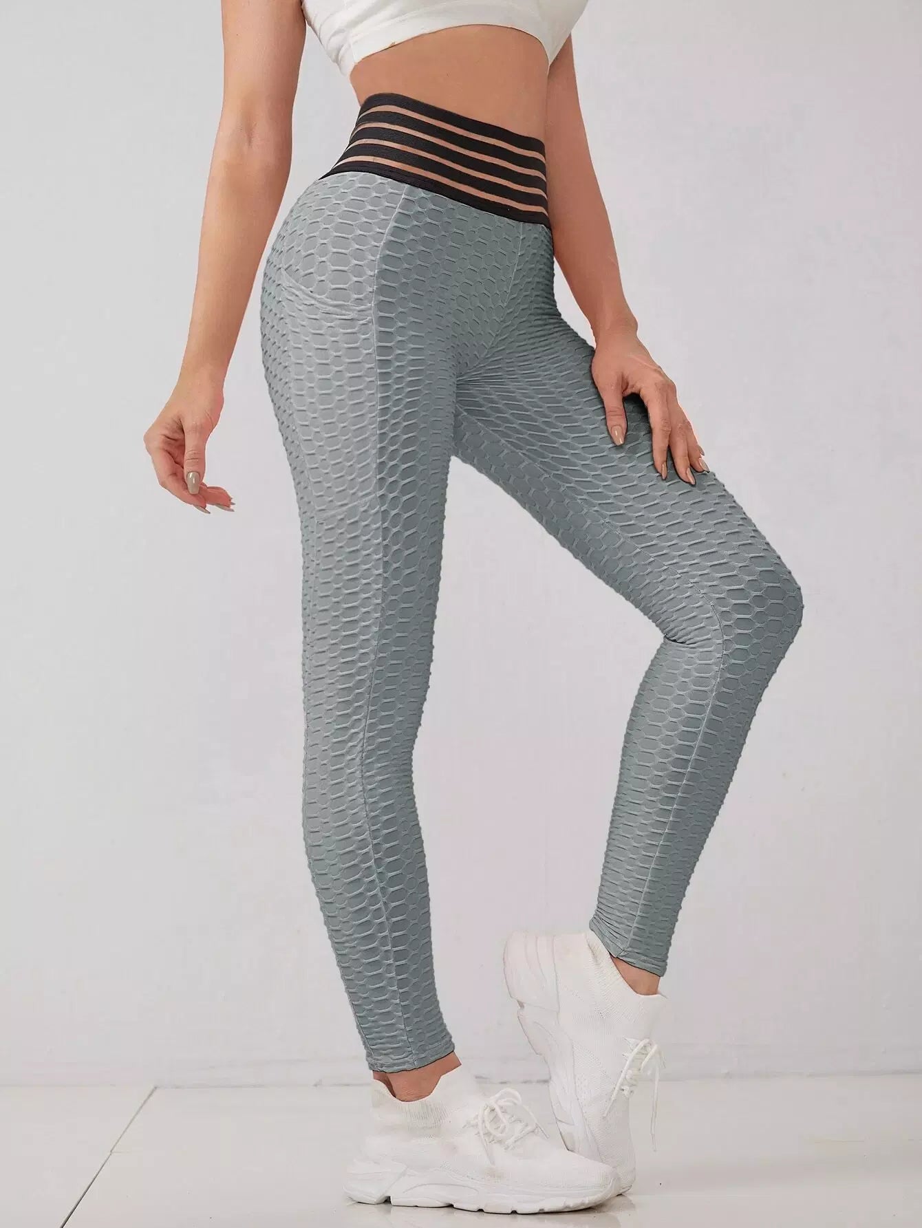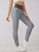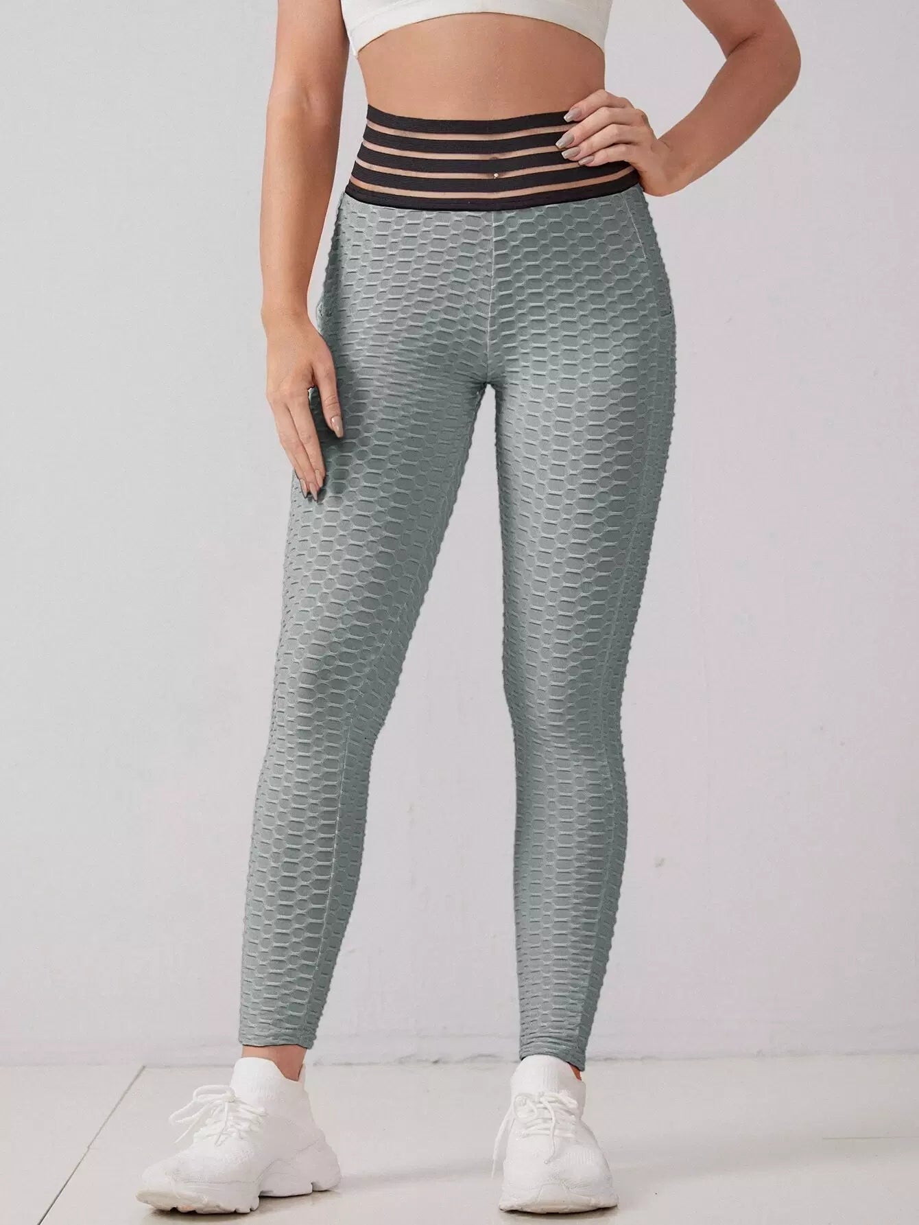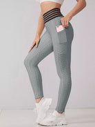 Striped Waist Honeycomb Textured Sports Leggings With Phone Pocket