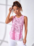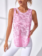 Studio Sport Camo Print Cut Out Curved Hem Sports Tank Top
