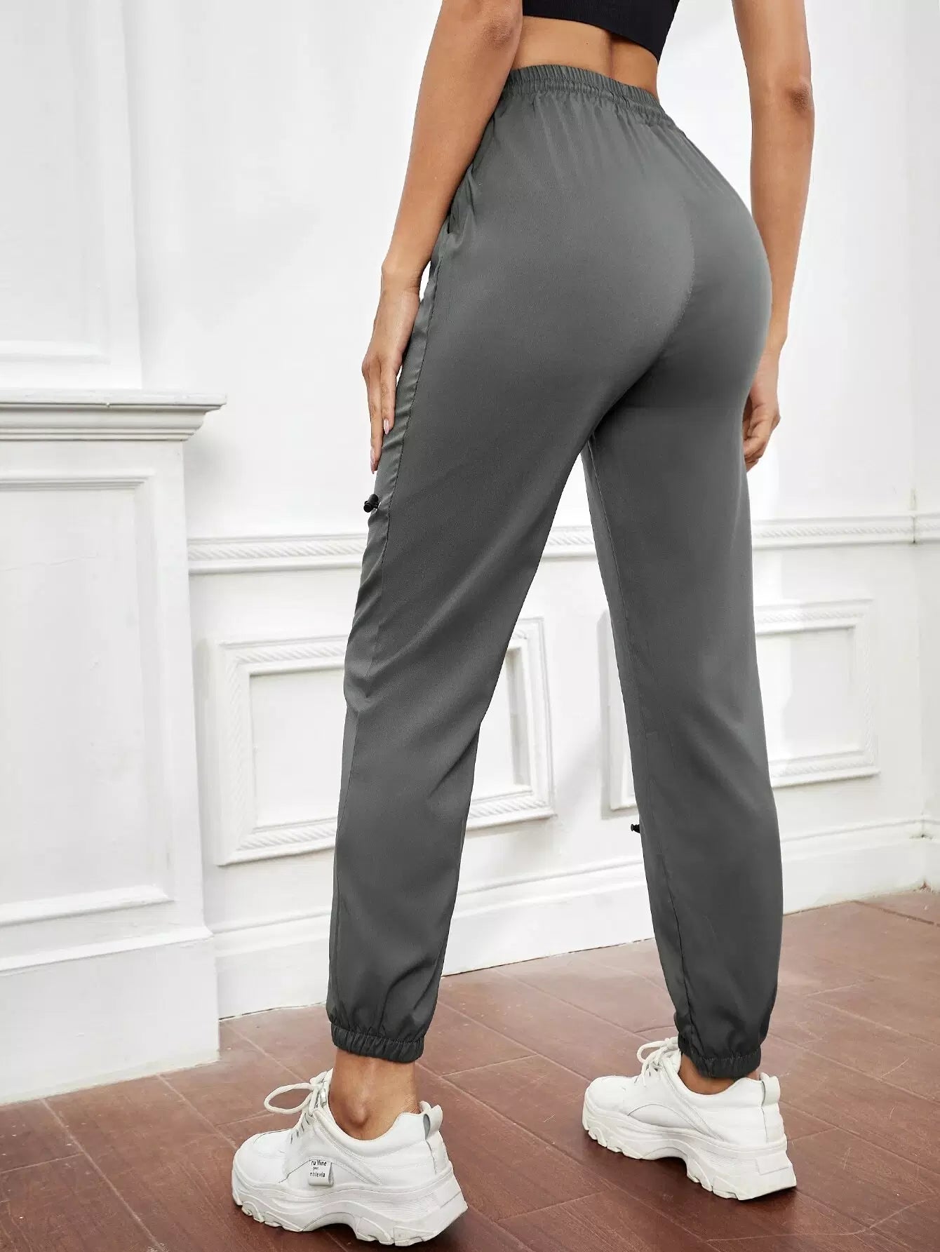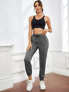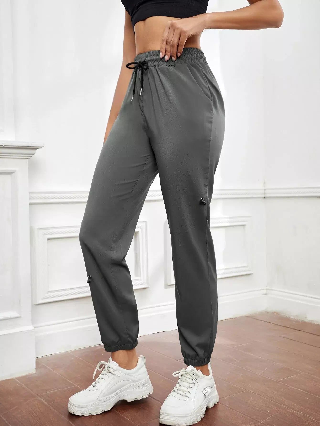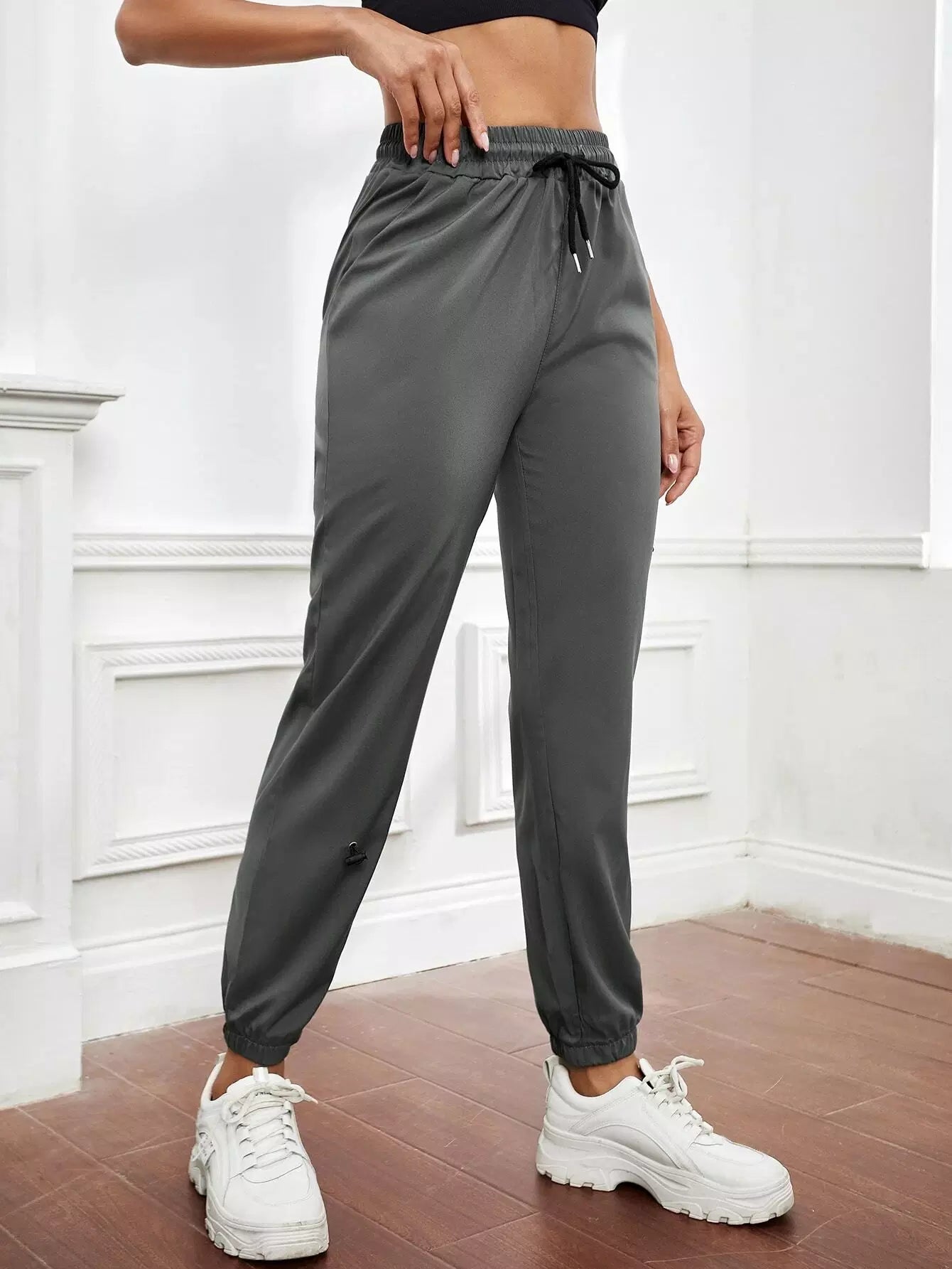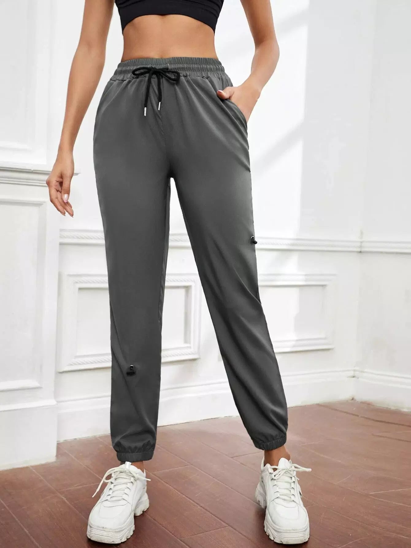Absorbs Sweat Breathable Drawstring Waist Solid Sports Pants
