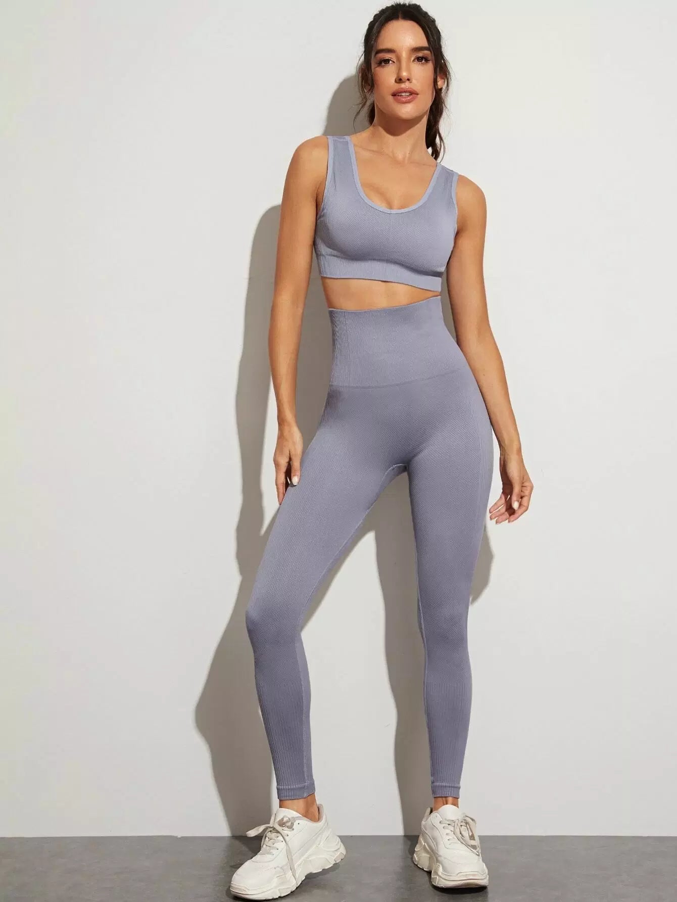 Seamless Wide Waistband Topstitching Sports Leggings