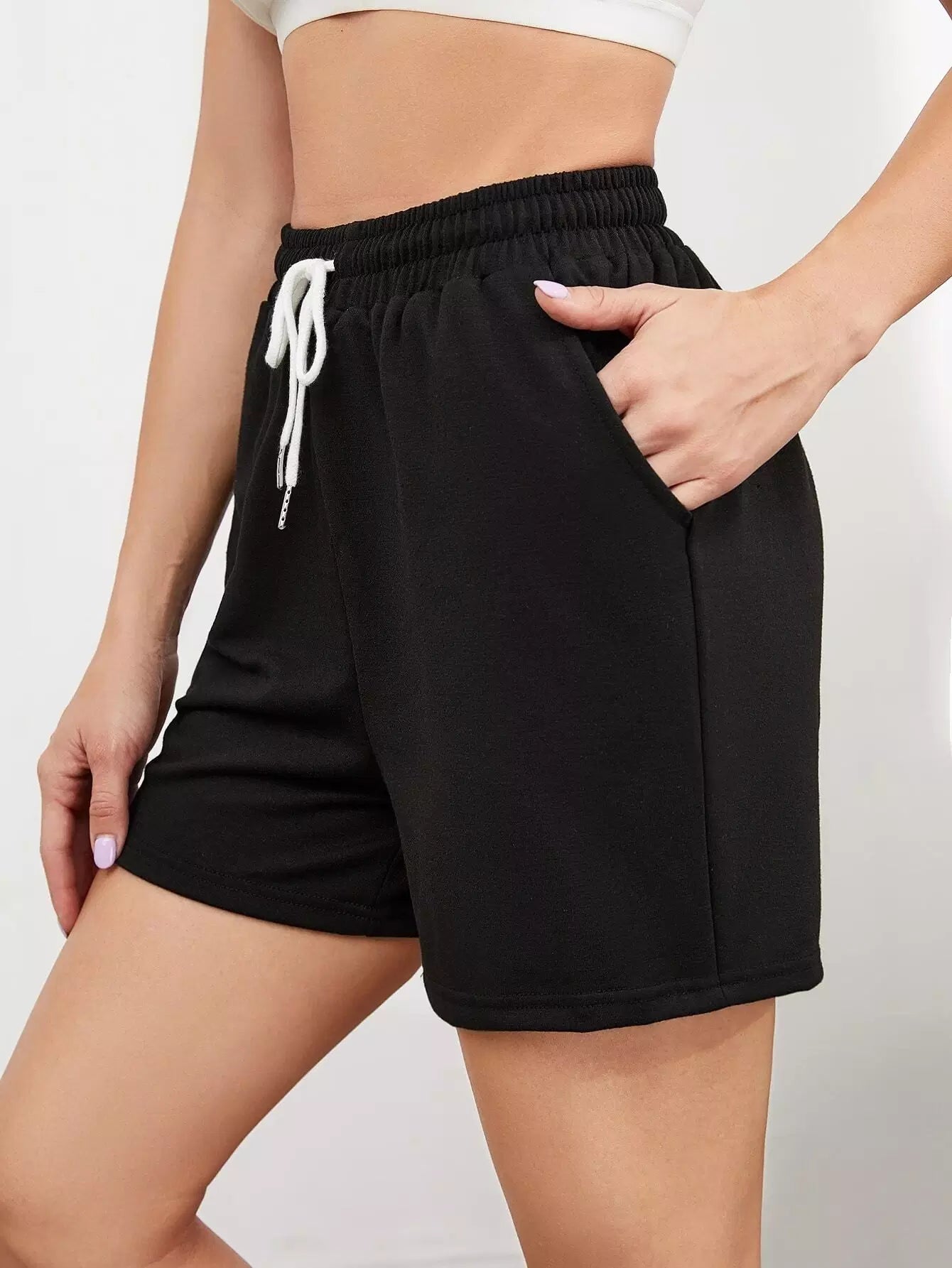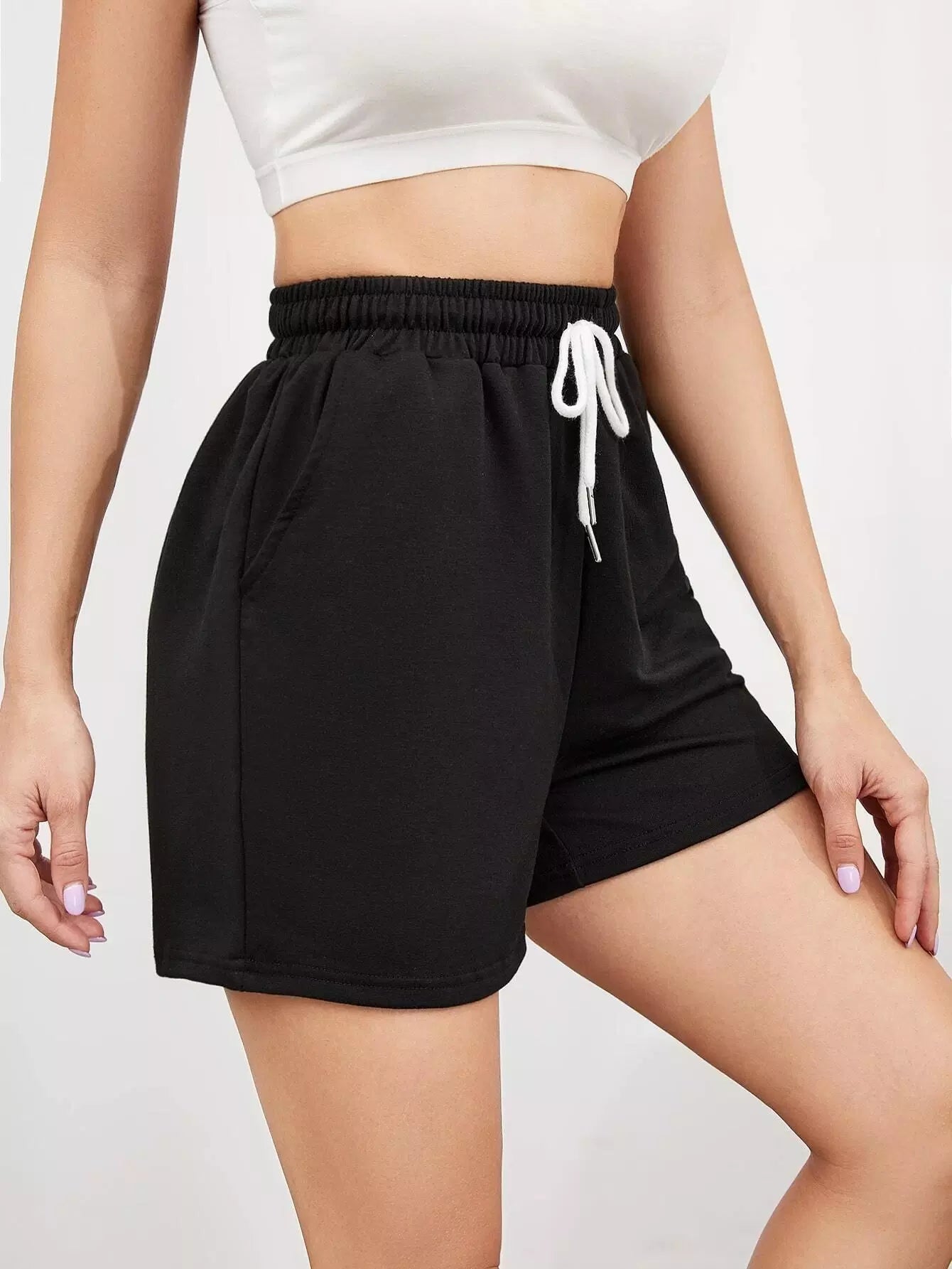 Solid Drawstring Sports Shorts