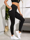 Topstitching Wide Band Waist Sports Leggings With Phone Pocket