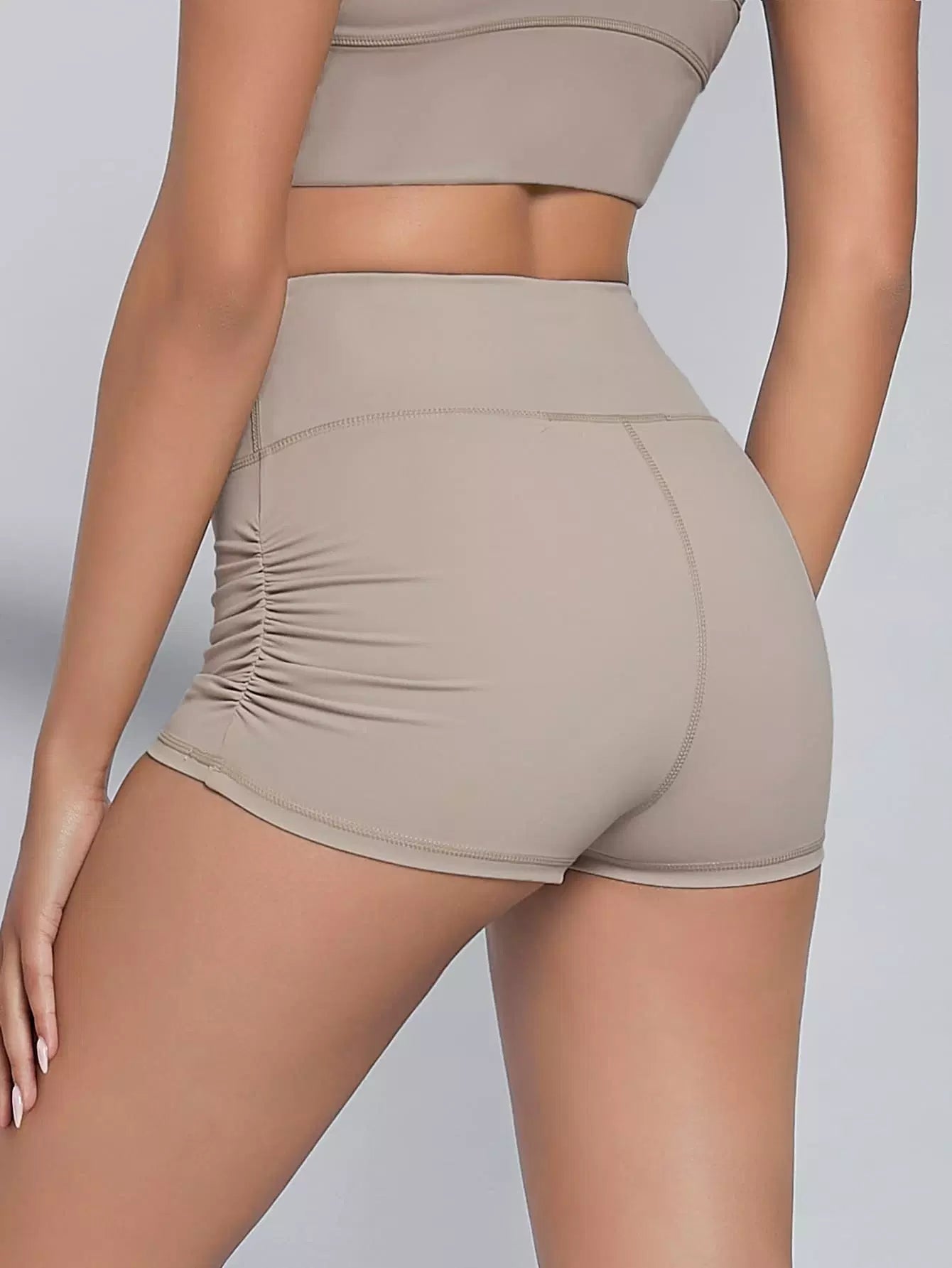 Wide Waistband Ruched Detail Sports Shorts