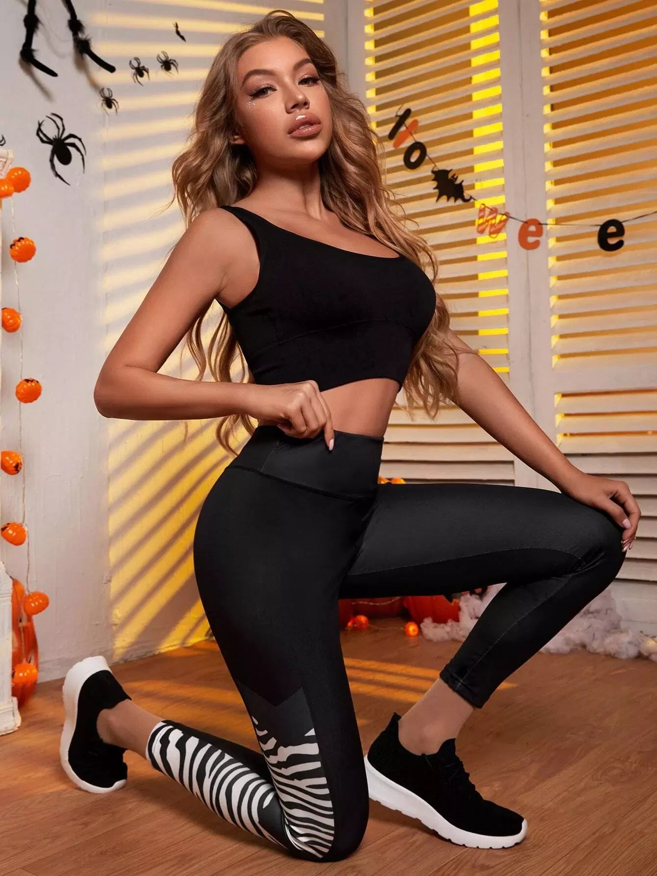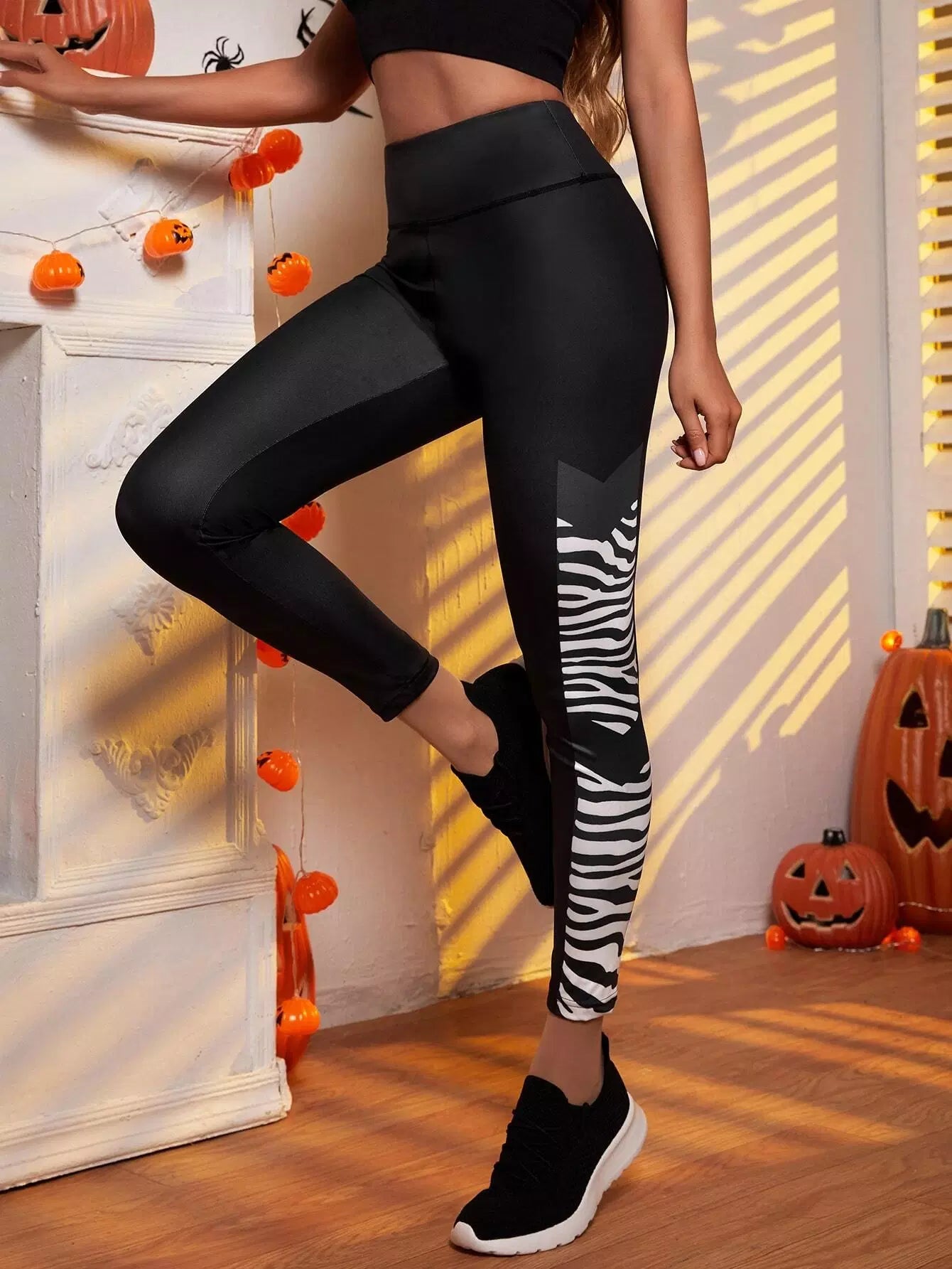 Zebra Striped Panel Sports Leggings