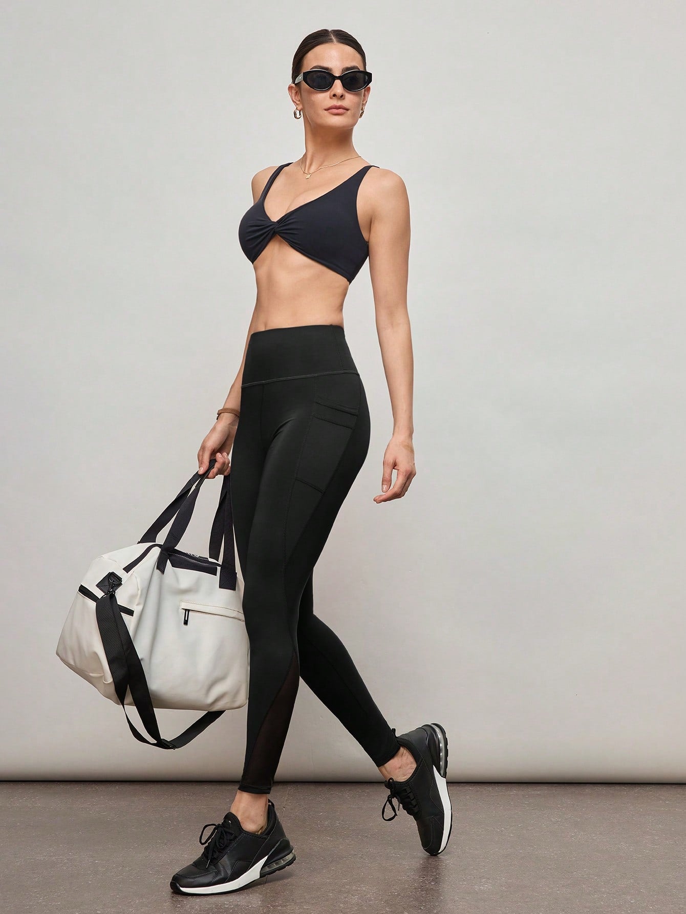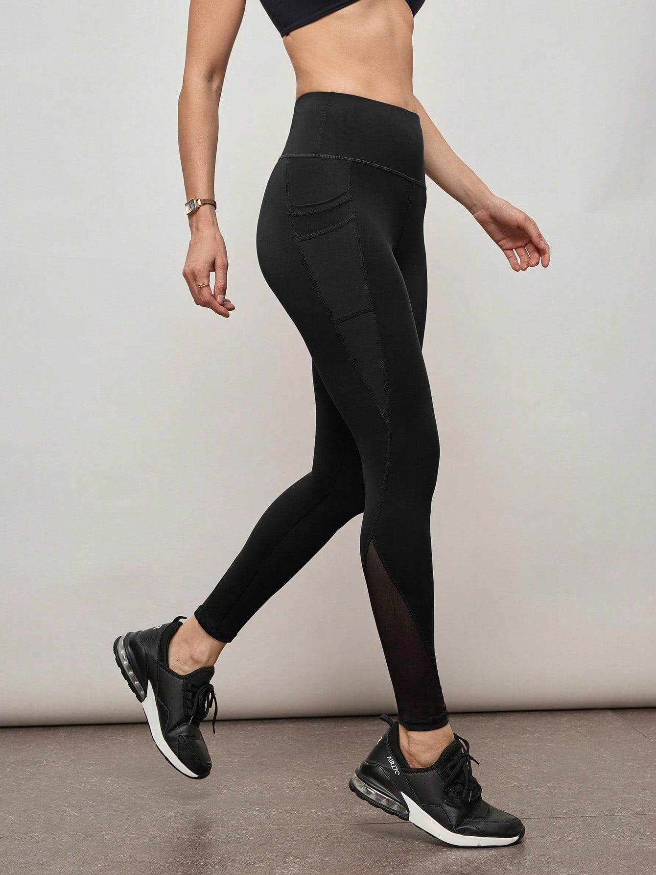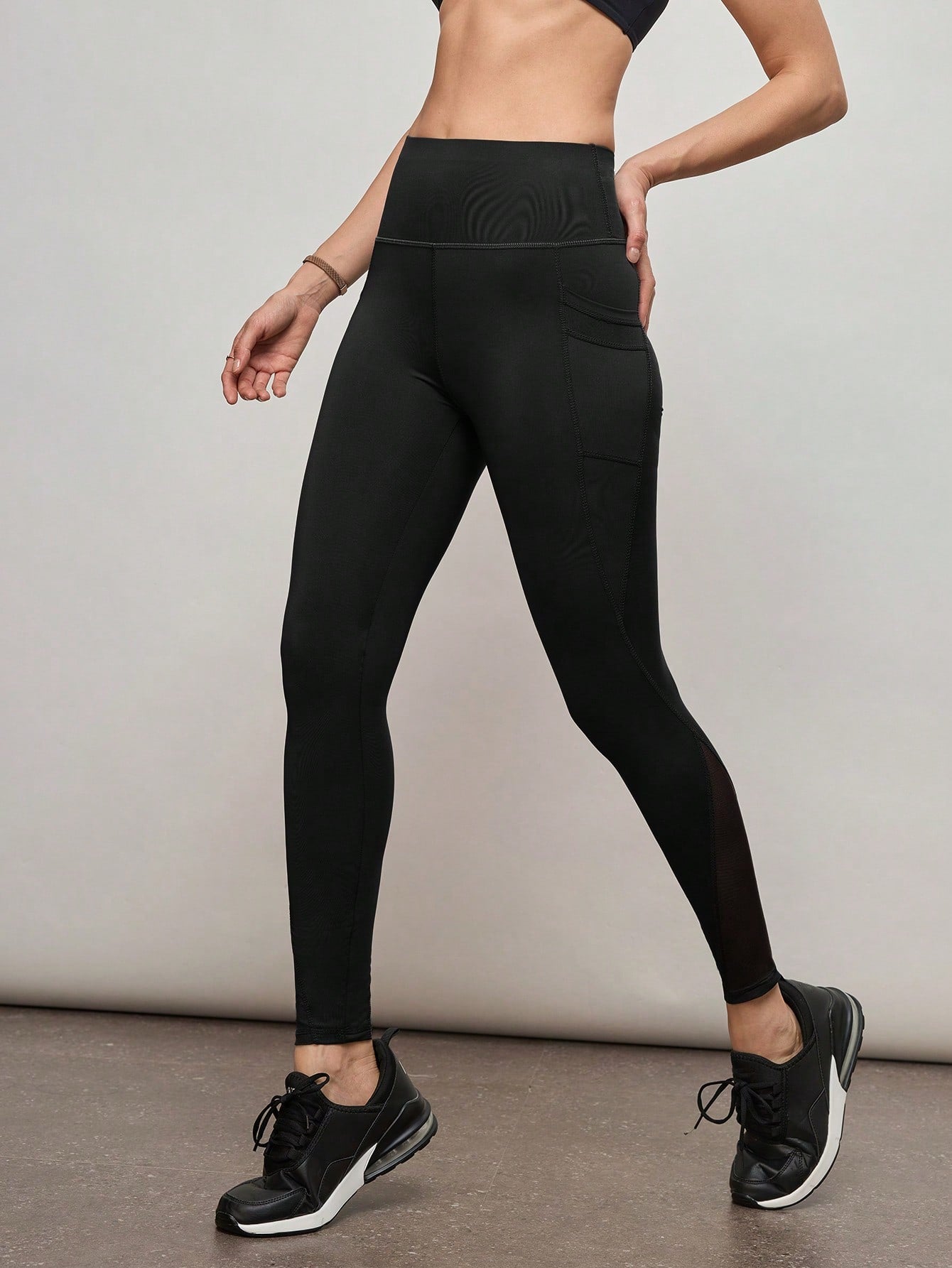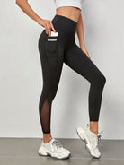 Activina Workout Leggings Seamless Tummy Control Mesh Insert Compression Tights With Side Phone Pocket