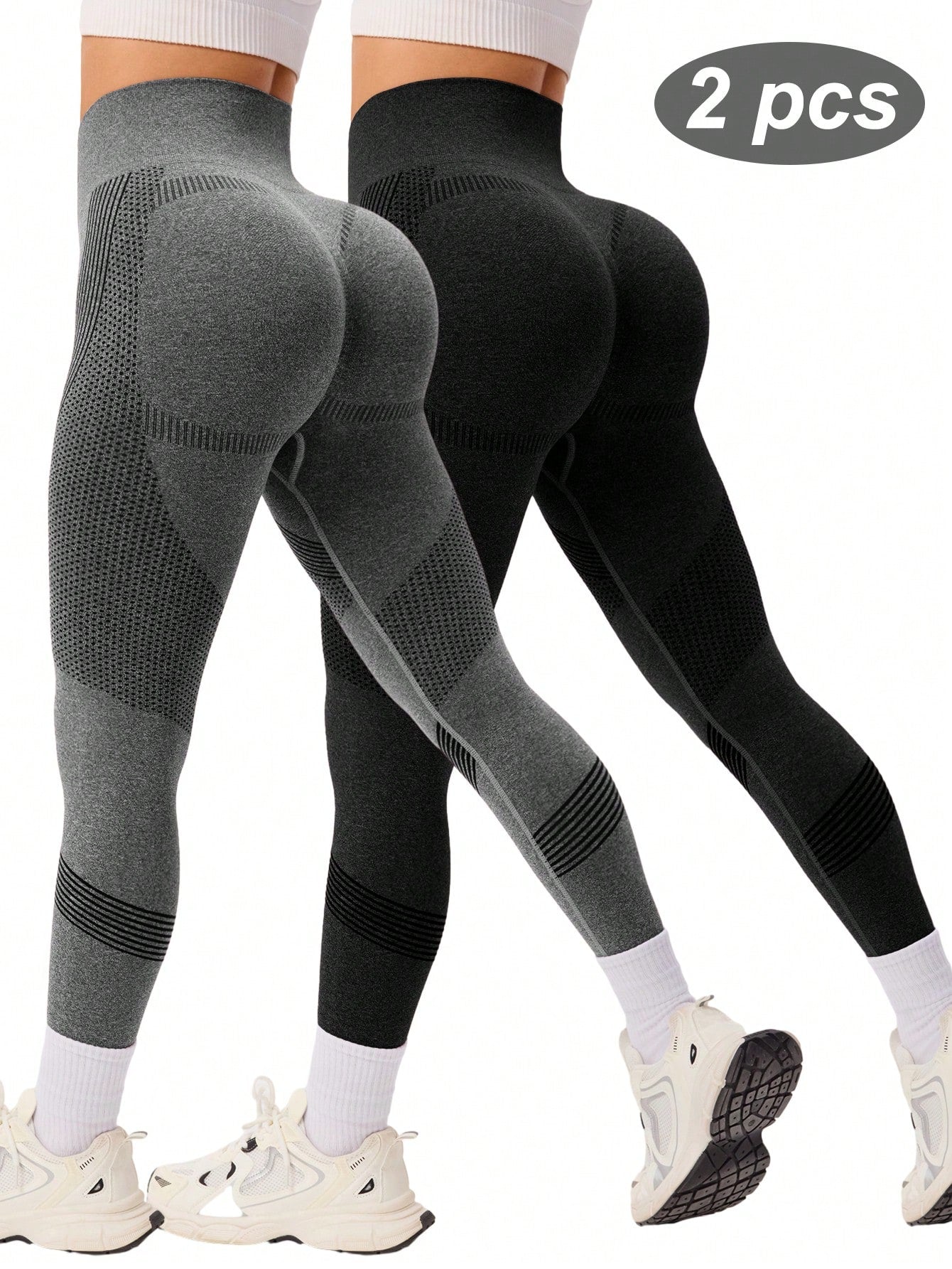 Gameset Sport Women's 2 Packs High Waisted Seamless Leggings. Long Lifting Rib-Knit Yoga Pants